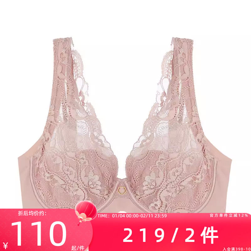 润微茶肌内衣女士大胸显小薄款收副乳聚拢大码上托防下垂蕾丝文胸