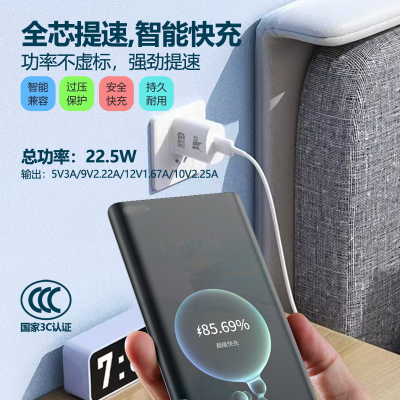 充电头快充通用安卓超级快充闪充22.5W插头USB单头套装3C认证适用于小米OPPO华为vivo电源适配器快速充电器头