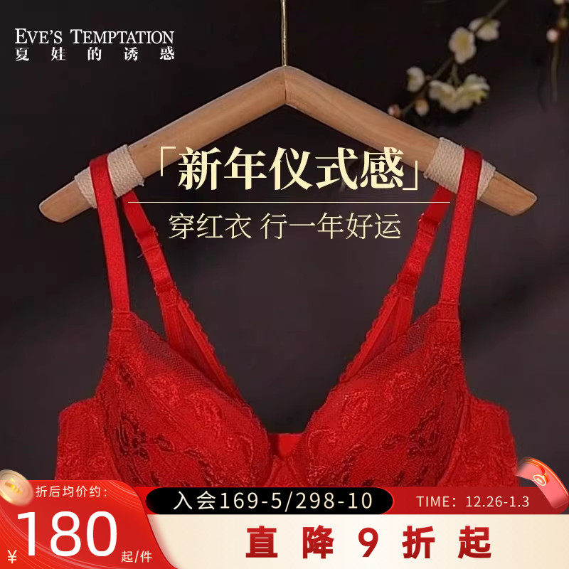 套装】夏娃的诱惑红色内衣内裤套装女本命年结婚蕾丝性感薄款文胸