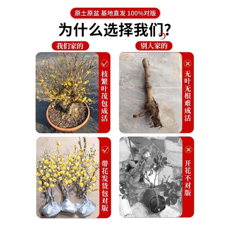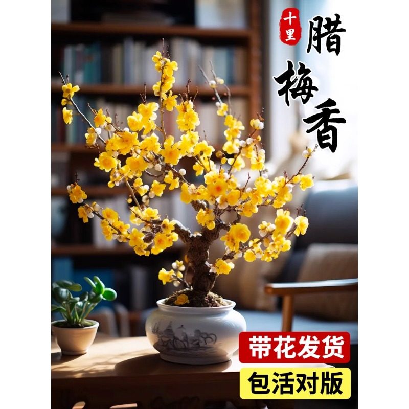 腊梅花树苗盆栽原生嫁接易活耐寒庭院室内外浓香老桩红梅年宵花卉