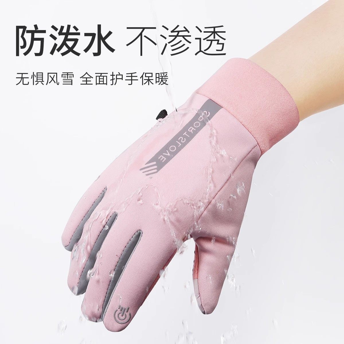 棉滑雪手套男女冬季防水触屏跑步运动骑行登山装备加绒厚保暖防风