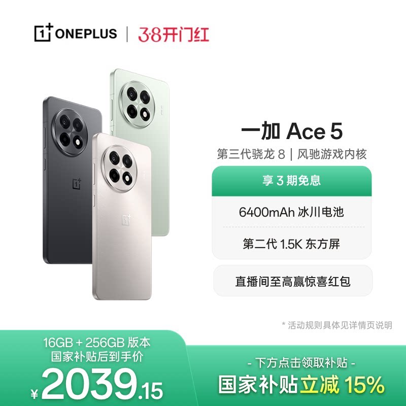 【oneplus】手机政府补贴 OPPO 一加 Ace 5 学生游戏性能手机第三代骁龙 8 官网正品AI手机