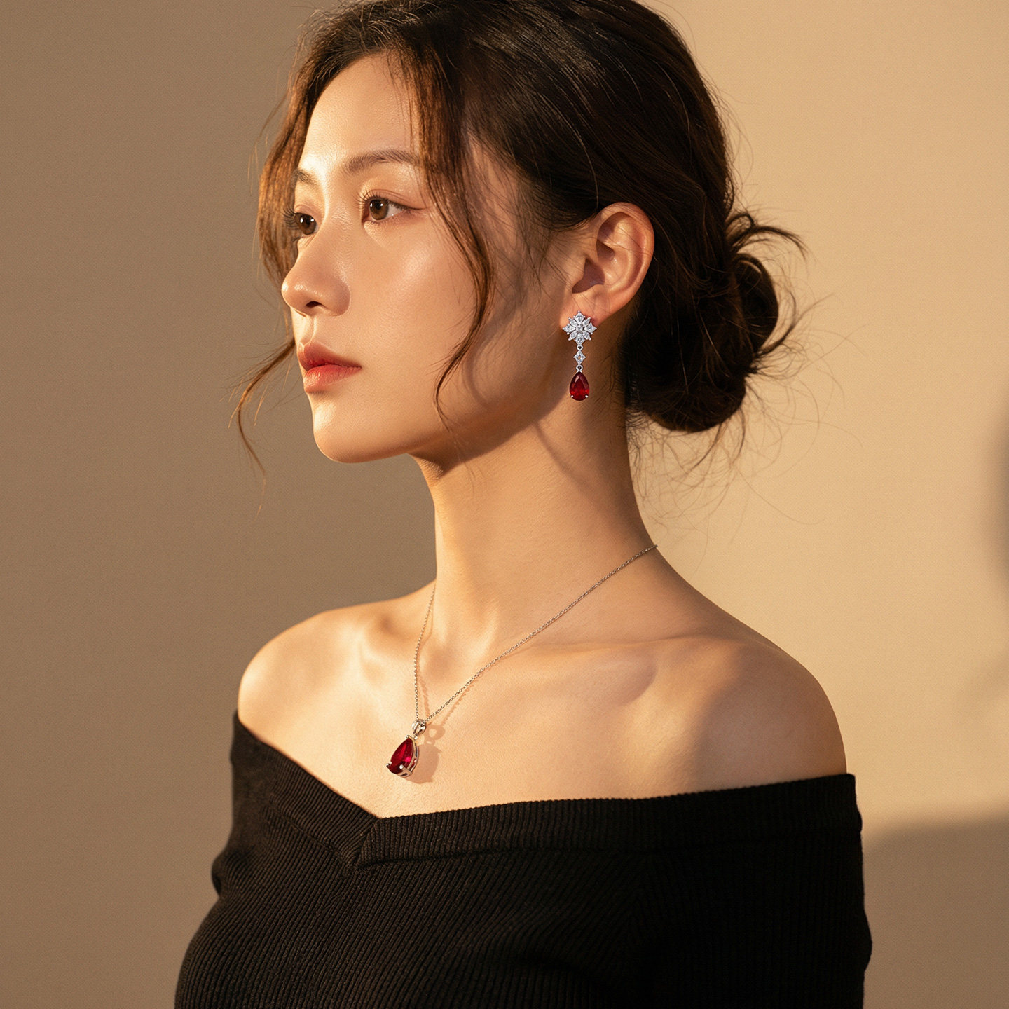 AILEQ镀K金耳饰新款培育红宝石水滴耳环铜镀金气质饰品时尚轻奢华