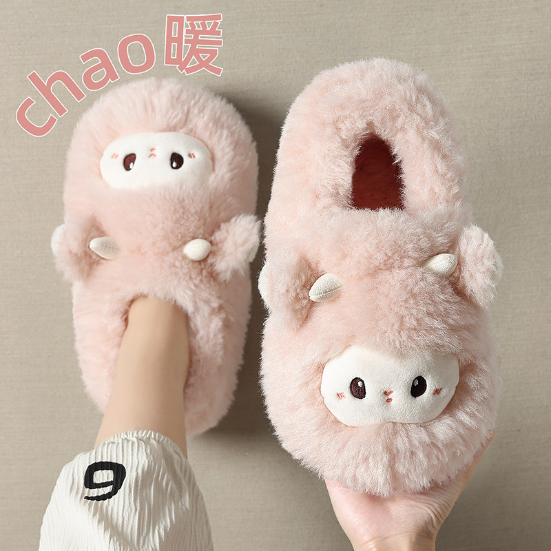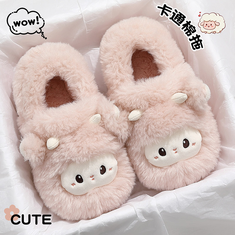 小羊棉拖鞋女款冬季外穿2025新款厚底防滑毛绒绒保暖加绒包跟棉鞋