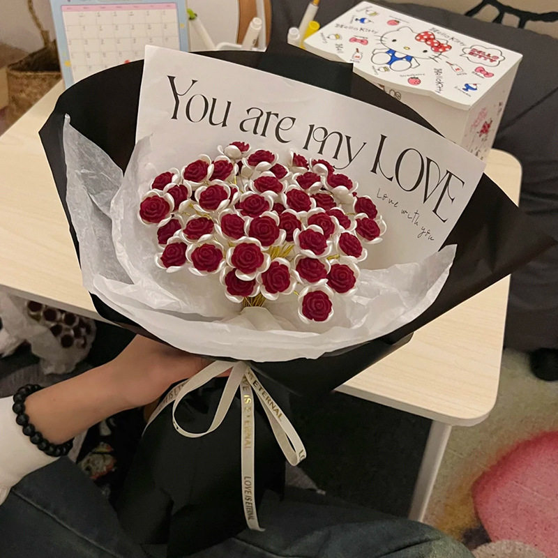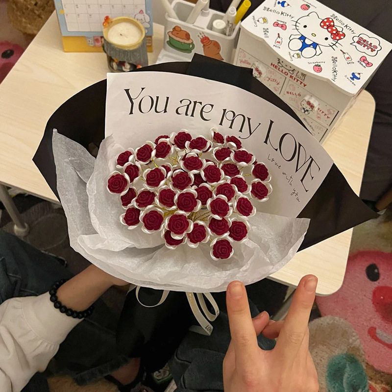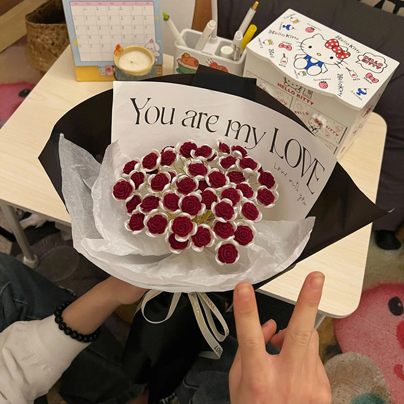 红丝绒玫瑰花束手工diy仿真花手捧花材料包送闺蜜女友520节日礼物