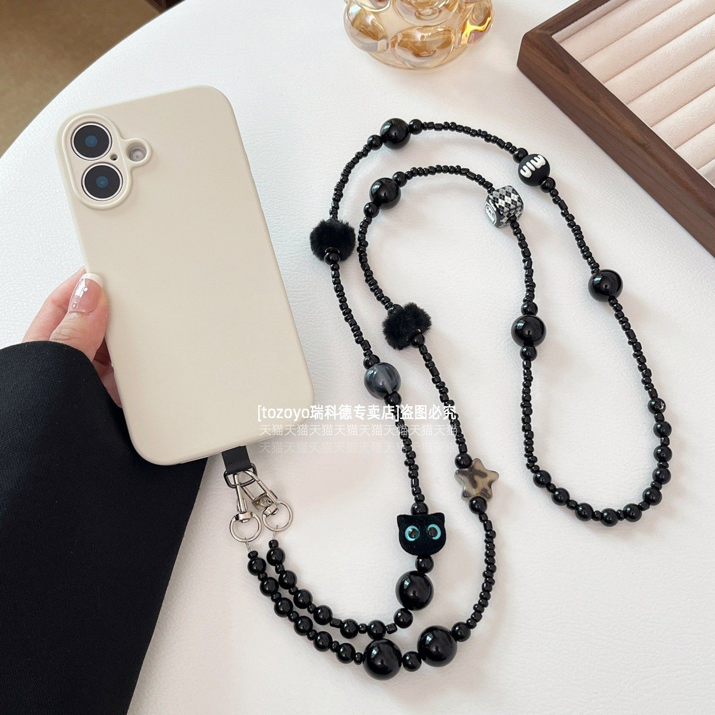 个性时尚豹纹毛球海星黑猫串珠手机背带链