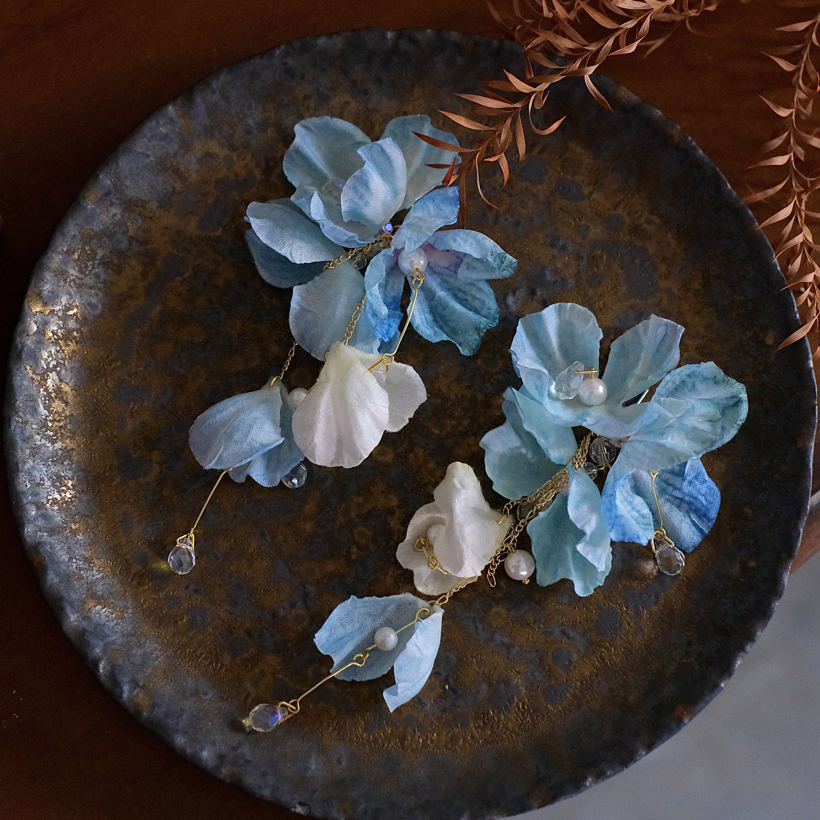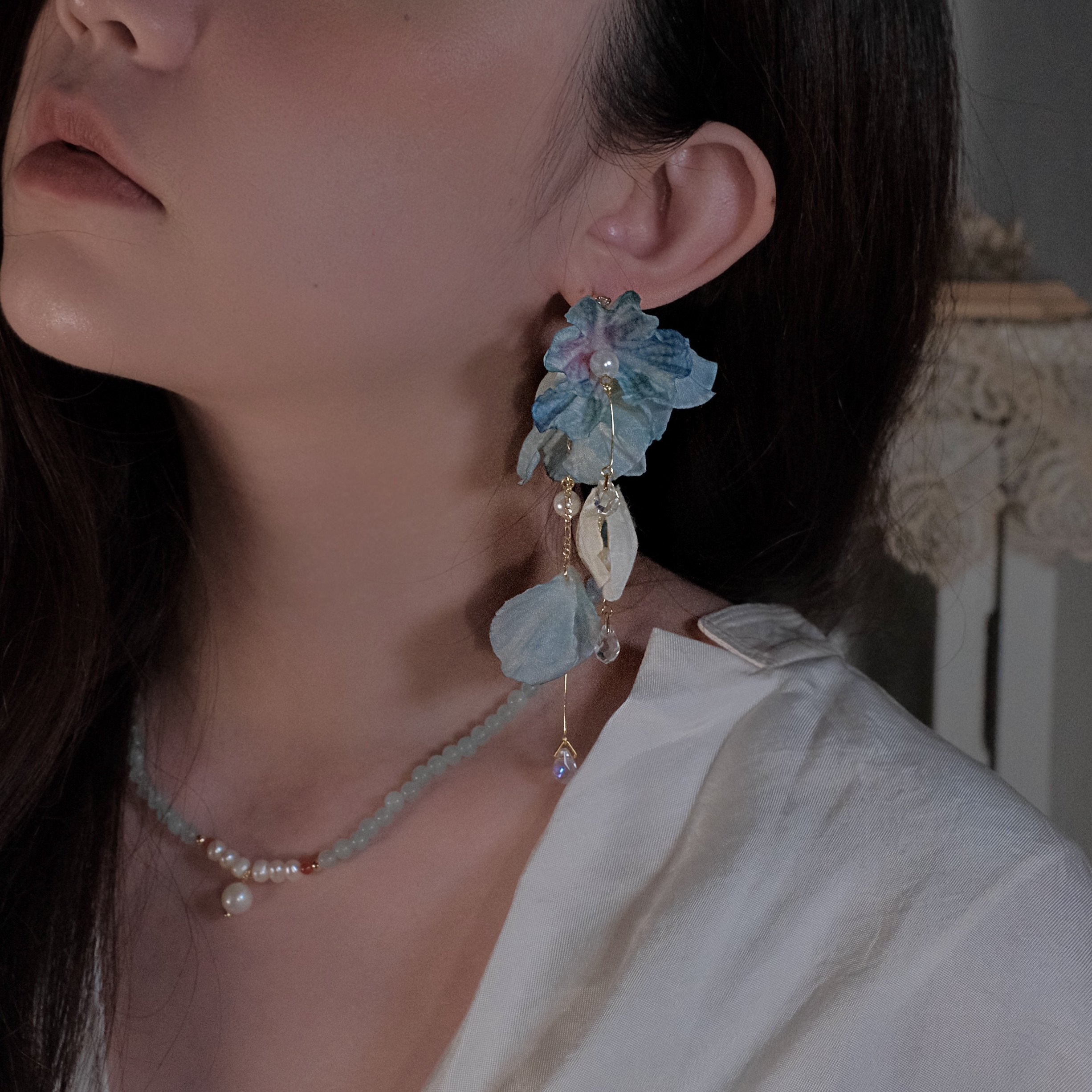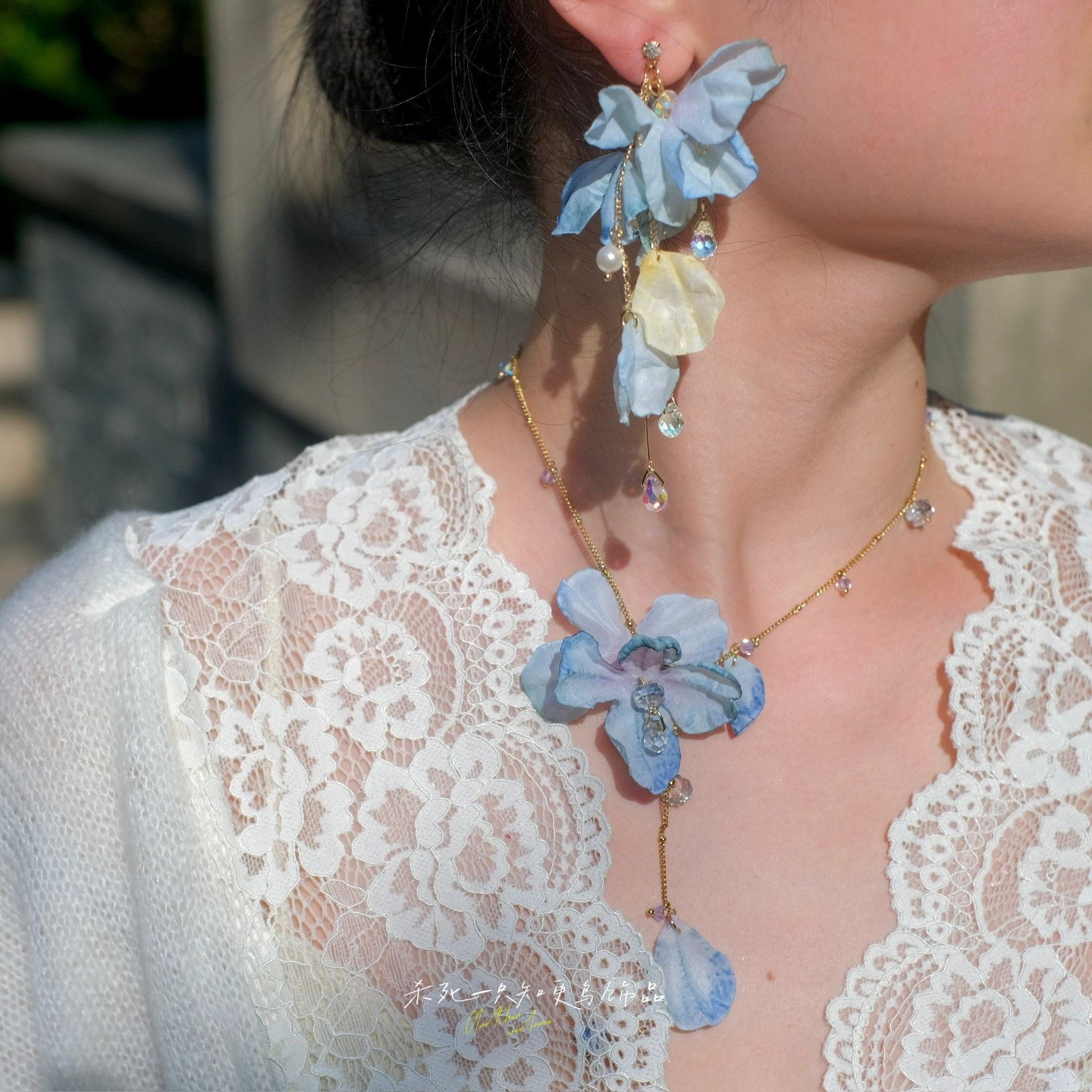 《海芋恋》原创夏天超仙女独特度假小众蓝色花朵夸张长款耳环耳夹