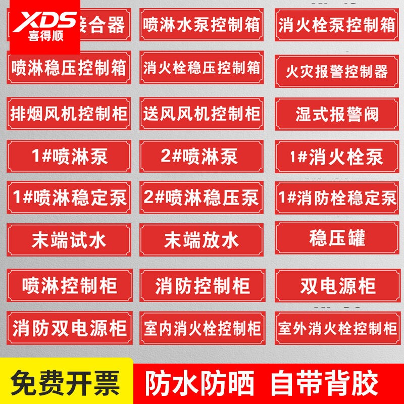 消防设备全系统标识消火栓喷淋双电源控制柜标识贴纸报警阀末端试水装置可视化标签送风排烟风机控制箱警示牌
