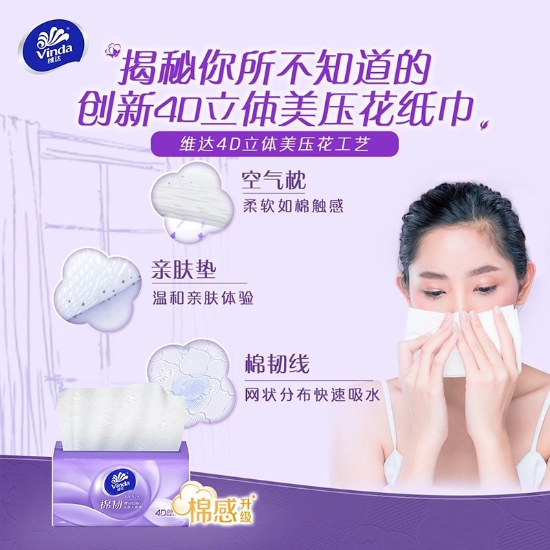 【进直播间】维达棉韧抽纸3层卫生纸巾实惠装餐巾纸面巾整箱家用