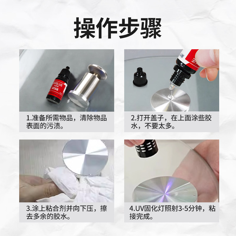 uv胶水无影胶粘钢化玻璃金属茶几玻璃奖杯鱼缸水晶装饰吊灯亚克力专用快干紫外线固化胶高透明强力无痕粘合剂