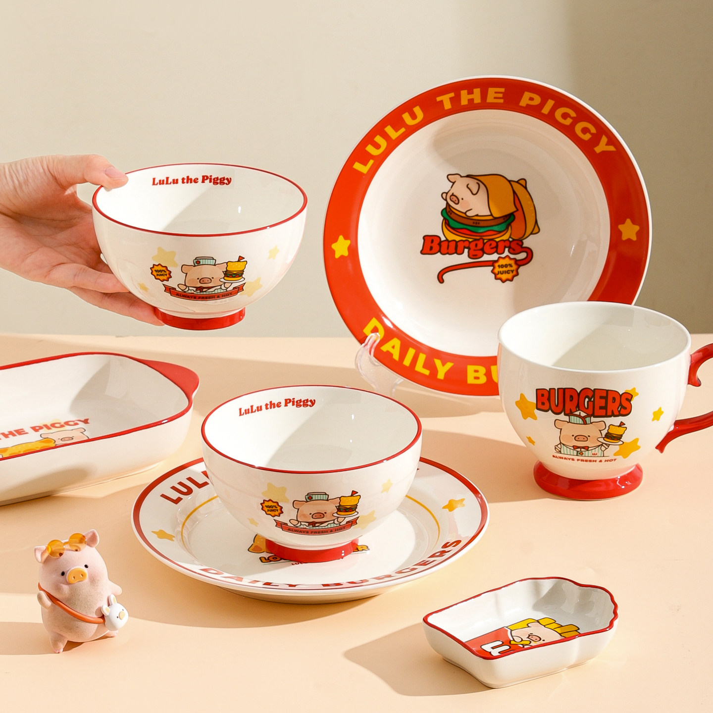 川岛屋&lulu猪联名 汉堡餐具套装碗盘碟搬家乔迁新居生日礼物女生