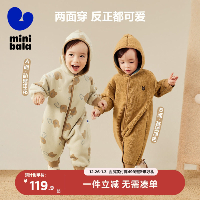 【暖芯绒绒衣】迷你巴拉巴拉外出连体衣毛绒宝宝婴儿爬服加绒加厚