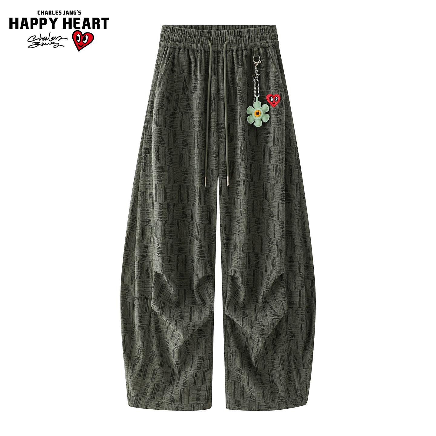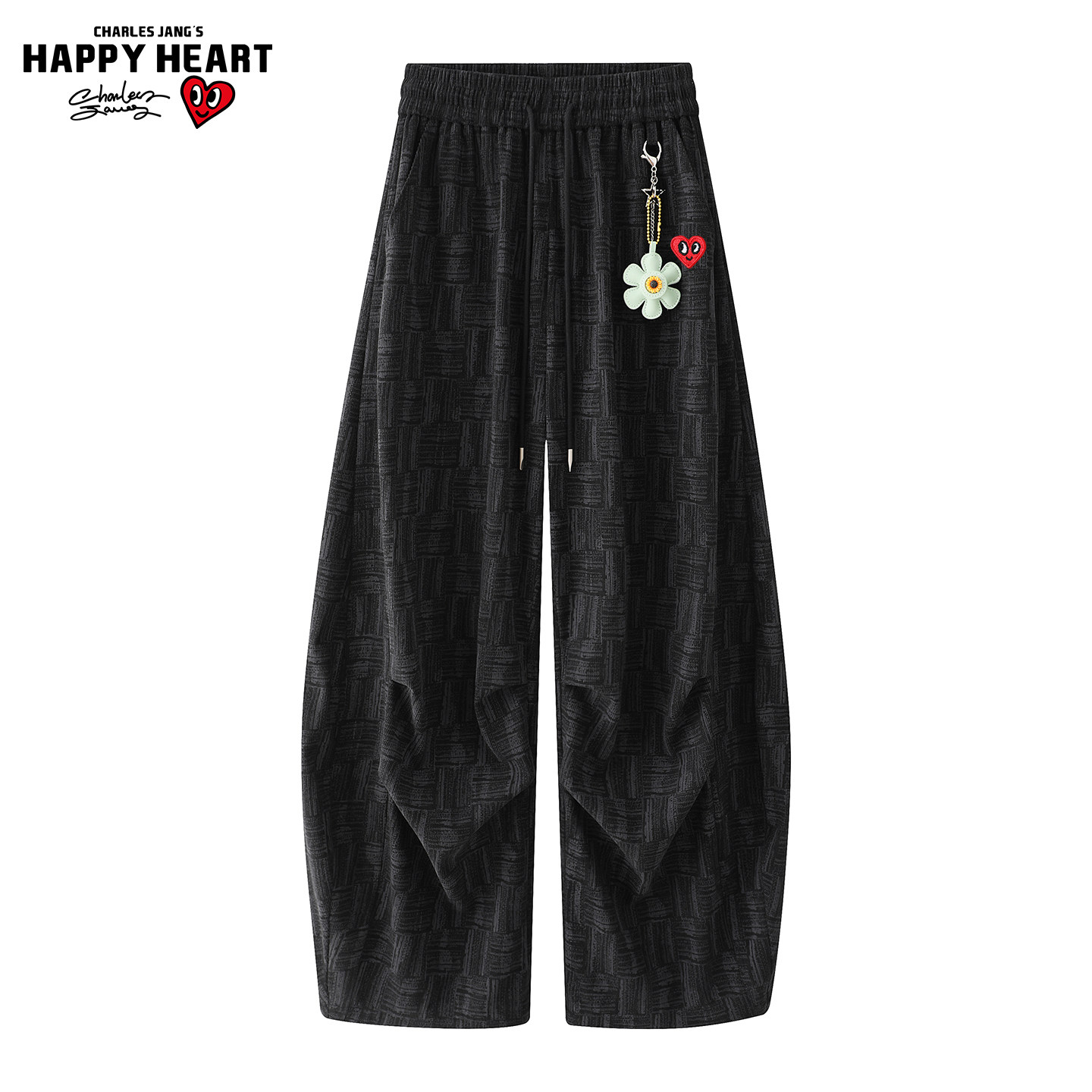 查尔斯桃心小香风编织纹裤子男女款春秋冬季直筒宽松阔腿弯刀长裤