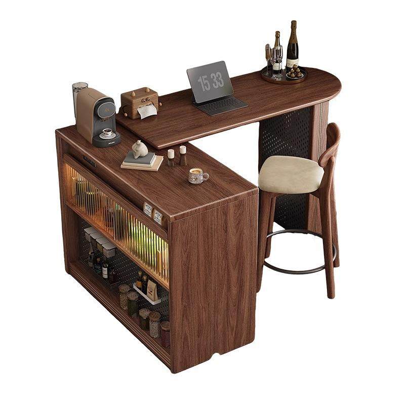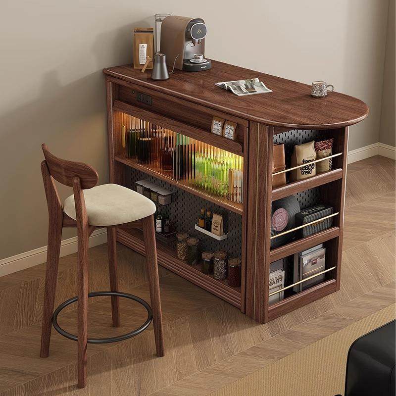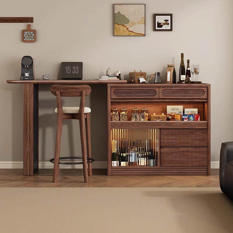 实木岛台餐桌一体家用小户型客厅可伸缩实木吧台桌中古风餐边柜