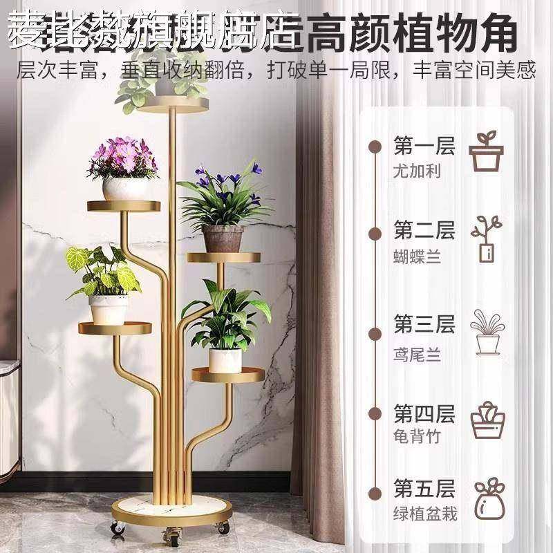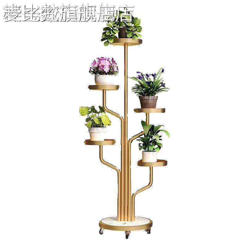麦比梵轻奢多层落地式花架子室内客厅置物架铁艺植物多肉花盆托 托架可移动摆件饰品床笠拉车