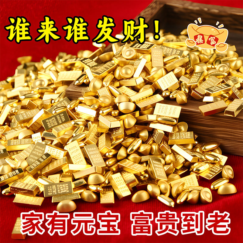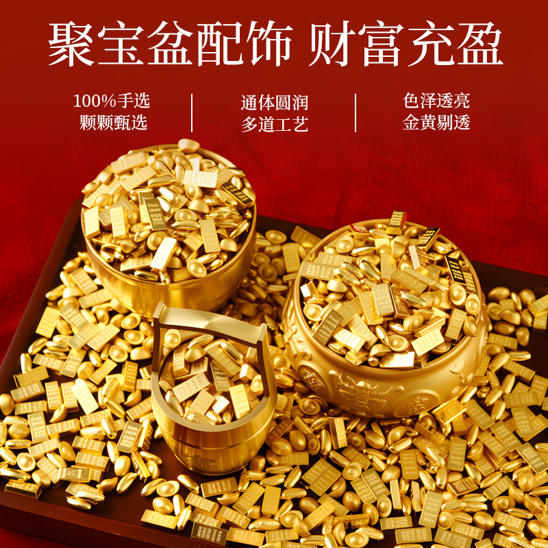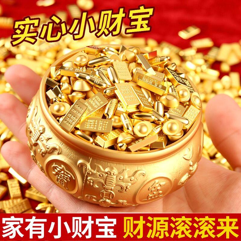 招财实心小元宝沙金金条金豆瓜子金米粒黄金米摆件铜缸聚宝盆配件