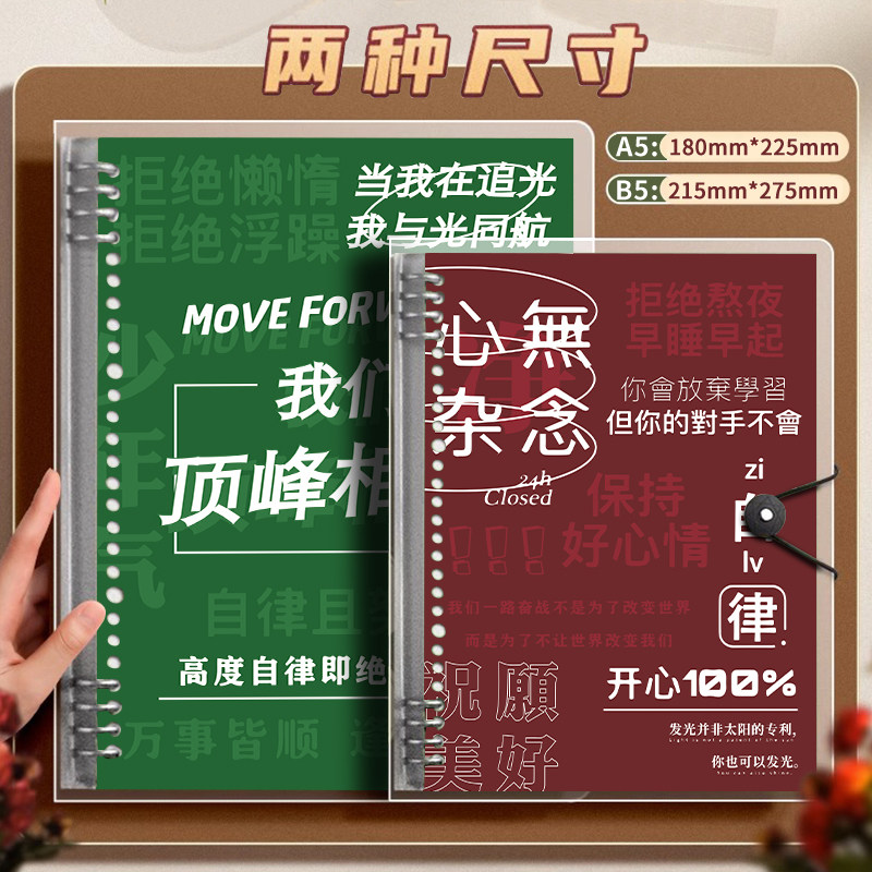 ins风高颜值学生课堂笔记本不硌手活页本铁孔可替换芯A5横线励志语录记事本加厚护眼纸张B5网格日记本批发