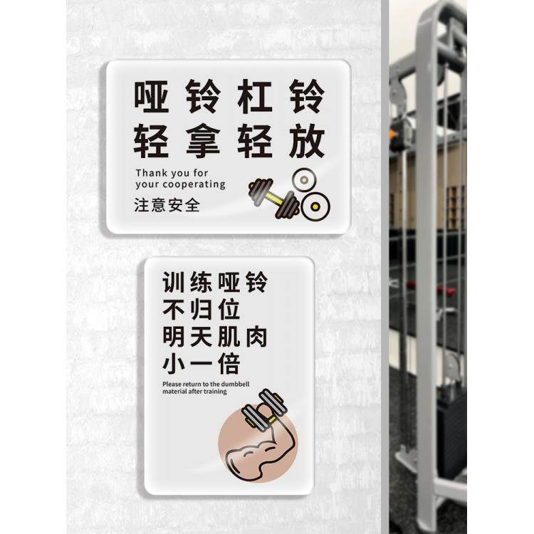 健身房标语2025新款健身房标识牌器械归位哑铃杠铃轻拿轻放提示牌禁止赤膊警示牌禁止吼叫温馨提示牌定制定做