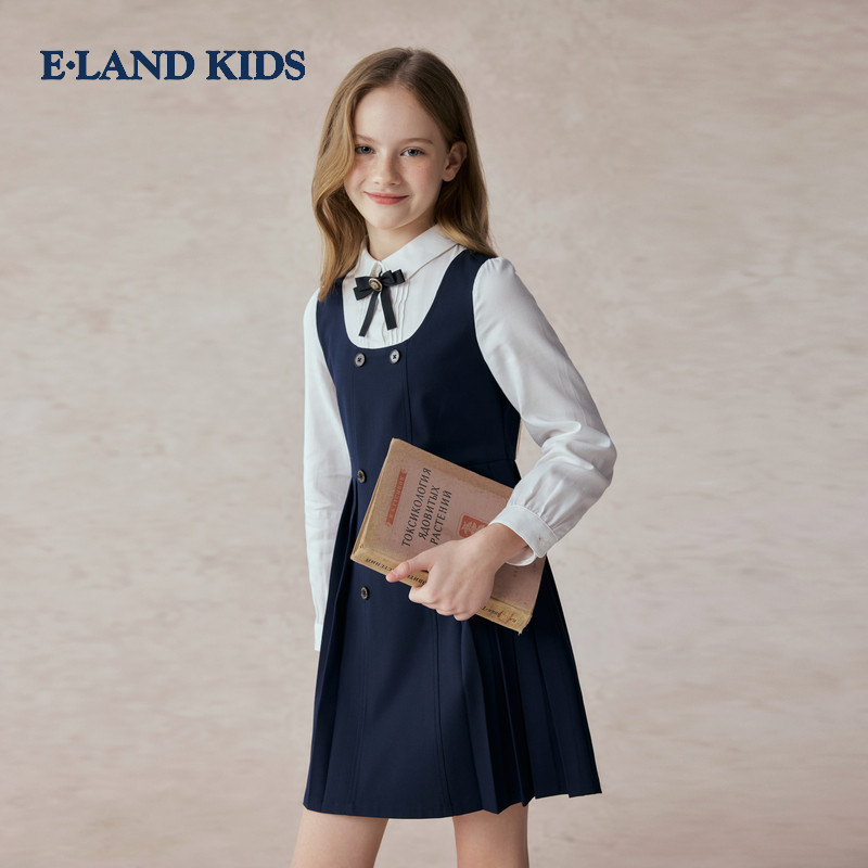eland kids衣恋童装女童连衣裙25年秋新品假两件礼服蝴蝶结演出服