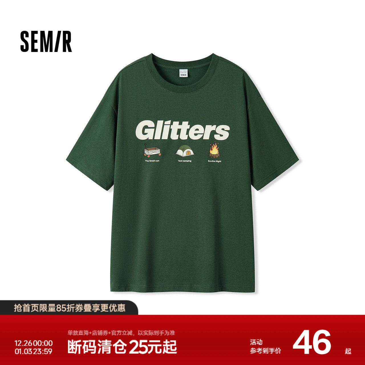森马短袖T恤男吸湿排汗内搭户外露营印花上衣夏季针织衣服圆领潮