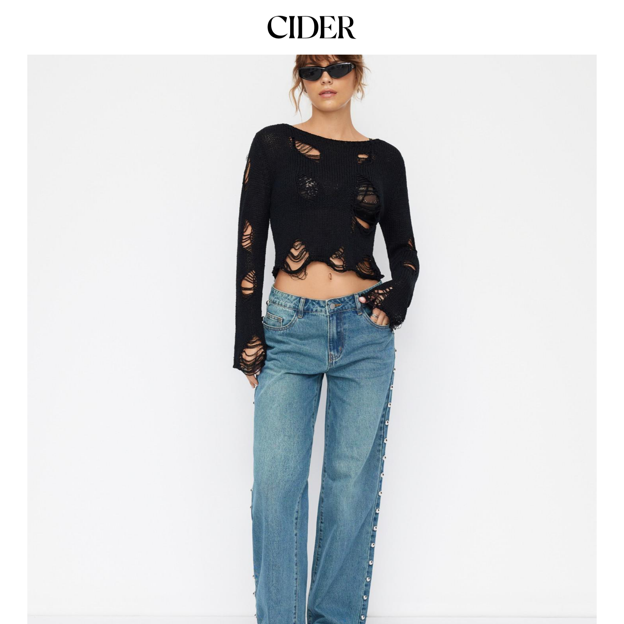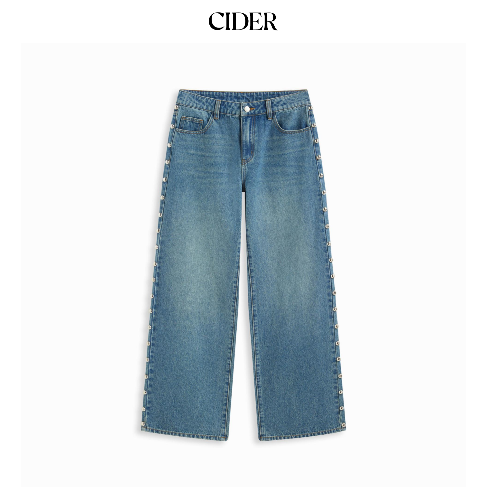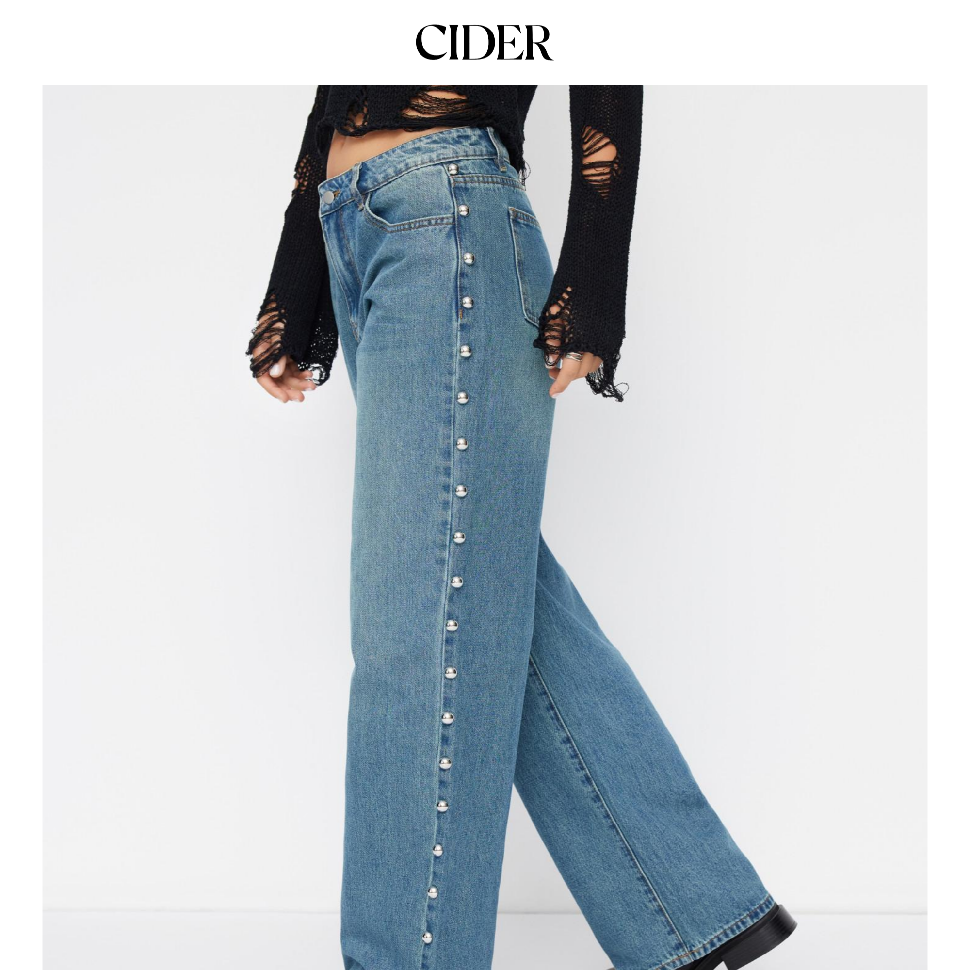 CIDER 春秋新品女装低腰金属装饰直筒牛仔长裤114840147