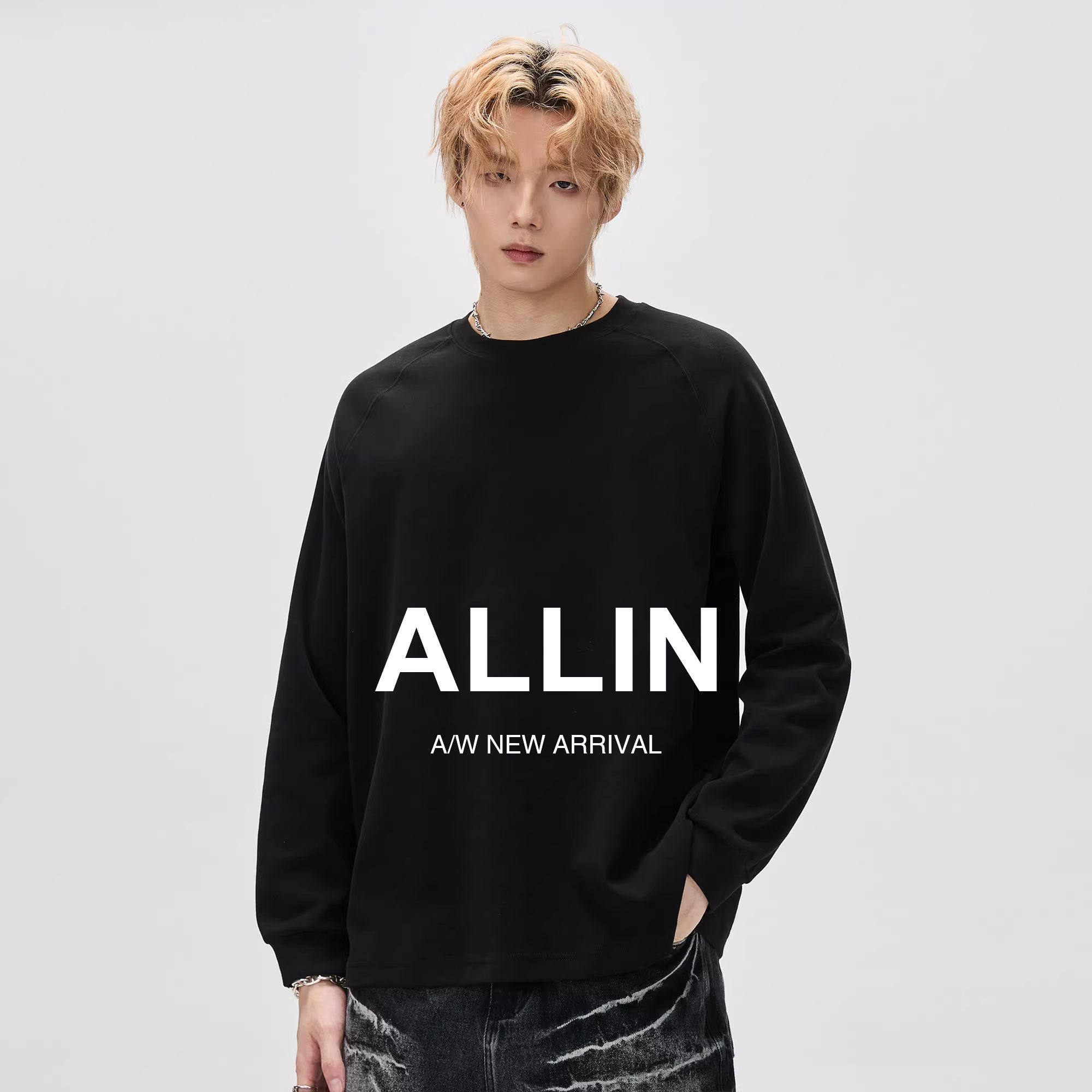 ALLIN 黑色重磅纯色长袖t恤男秋冬季宽松圆领内搭打底衫情侣上衣