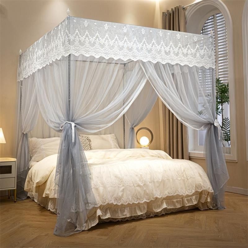 2024新款蚊帐家用卧室三开门老式落地纹账2023支架杆加厚加密防蚊