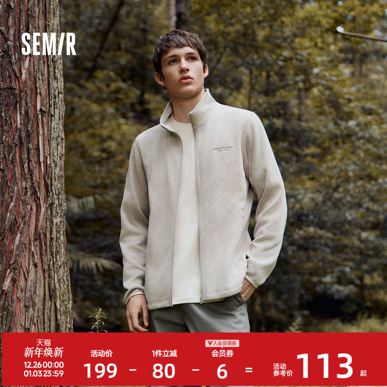 森马外套男抗静电花纱针织夹克立领2025秋冬新款绣花上衣休闲时尚