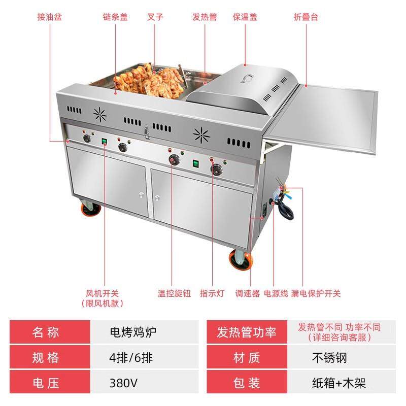 广凌电烤鸡炉手推款新奥尔良烤鸡腿电烤商用手推车摆摊自动烧烤机
