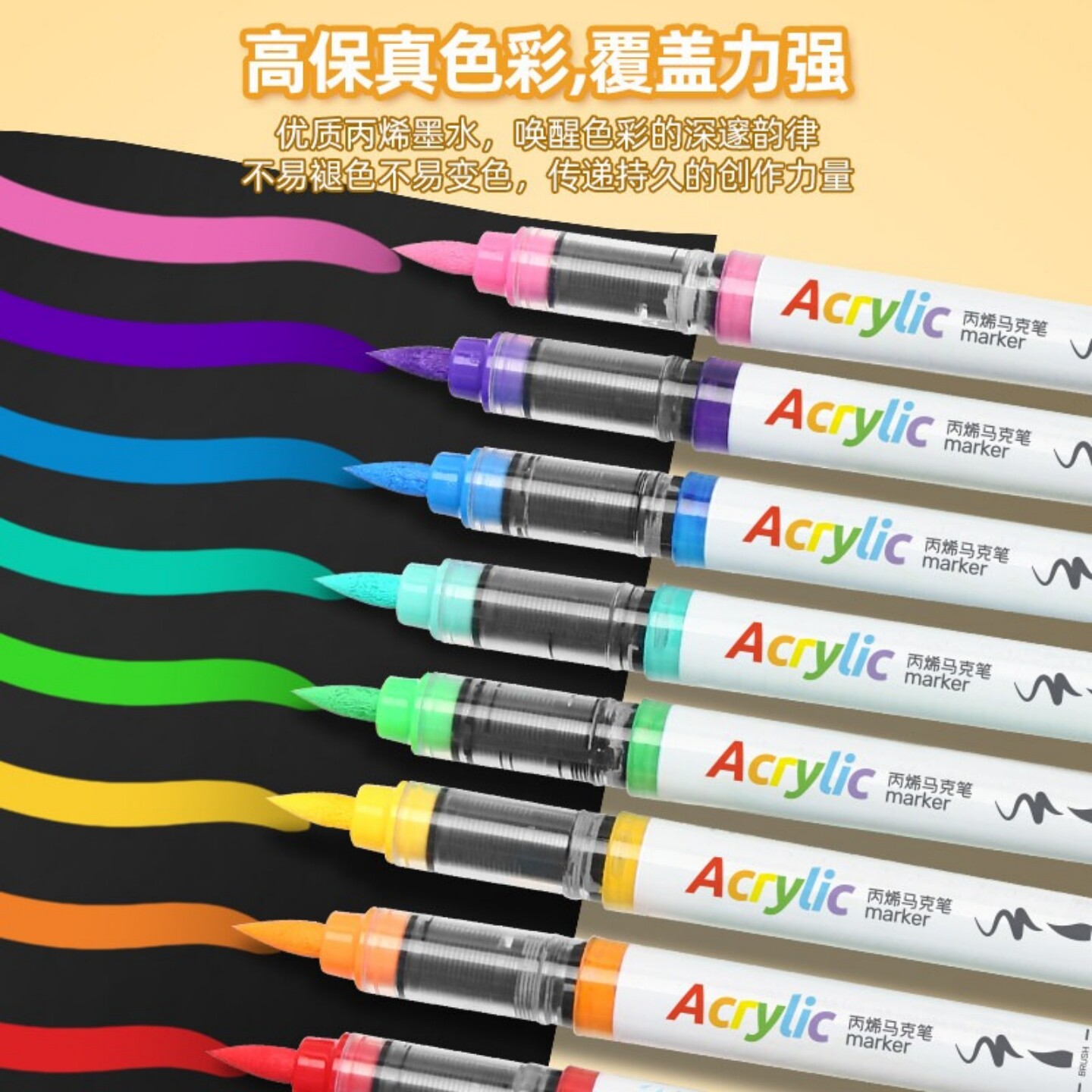 直液式丙烯马克笔软头小学生美术专用水彩笔儿童颜色笔可水洗24色画笔不透色48绘画可叠色彩色笔36水性丙烯笔