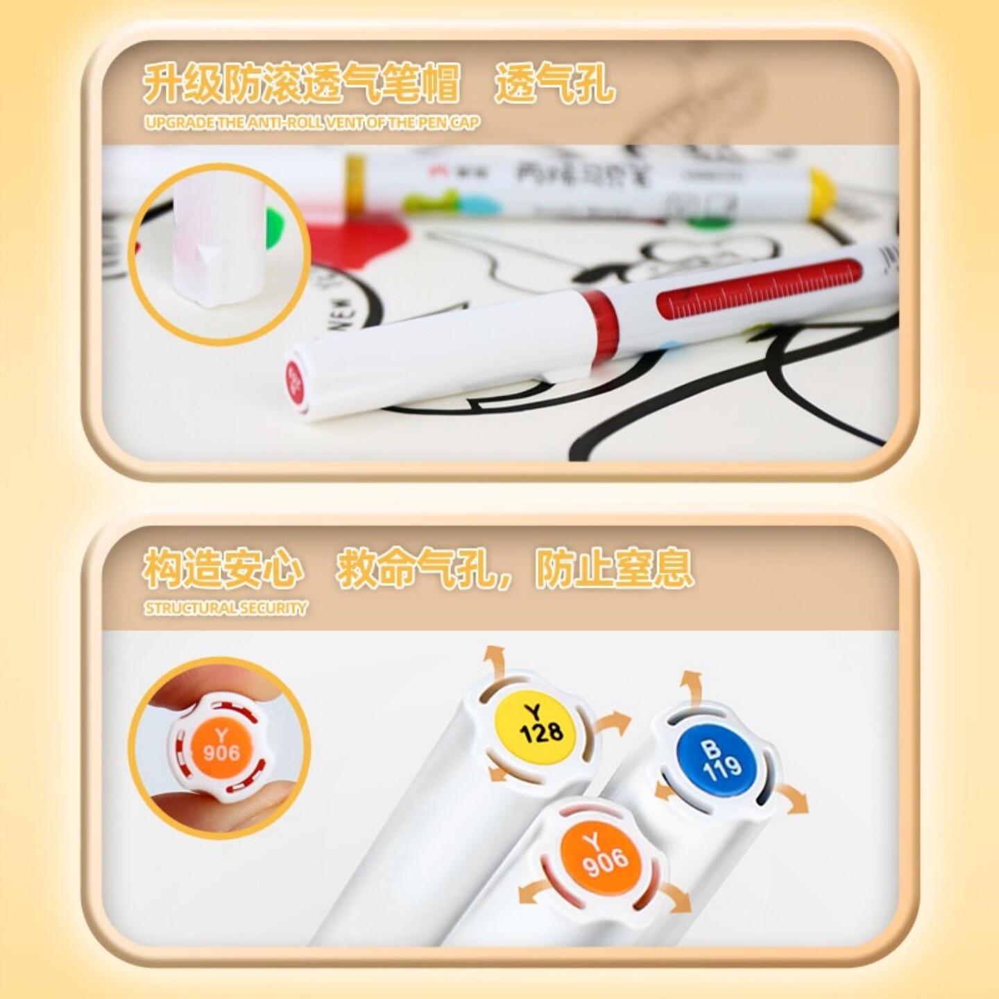 丙烯马克笔幼儿园专用不透色可叠色18色水彩笔小学生儿童无毒可水洗美术彩色笔炳稀笔芯画画笔比西24色涂色36
