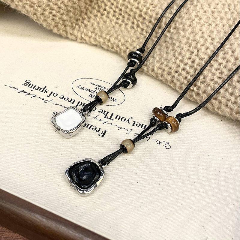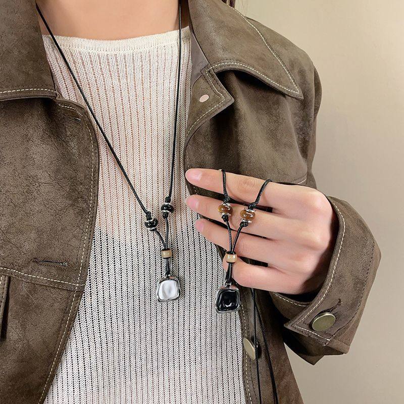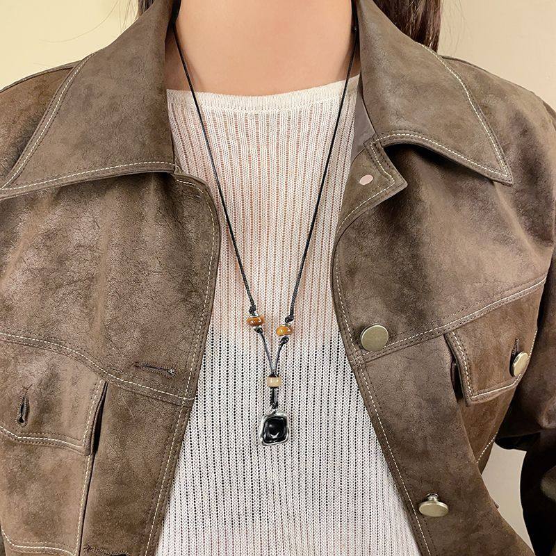 皮绳项链抽拉秋冬高档拉德高级新款毛衣配饰爆款锁骨民族风吊坠