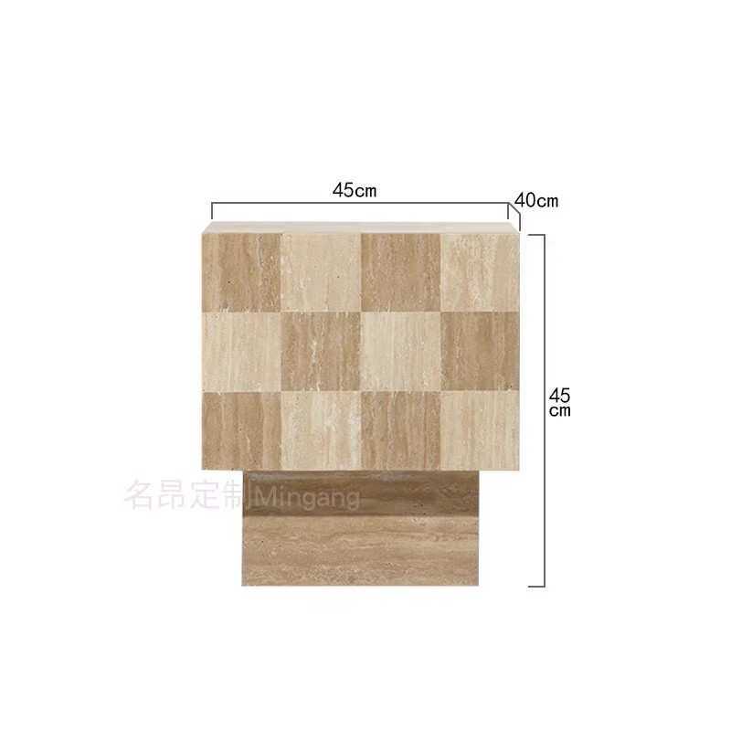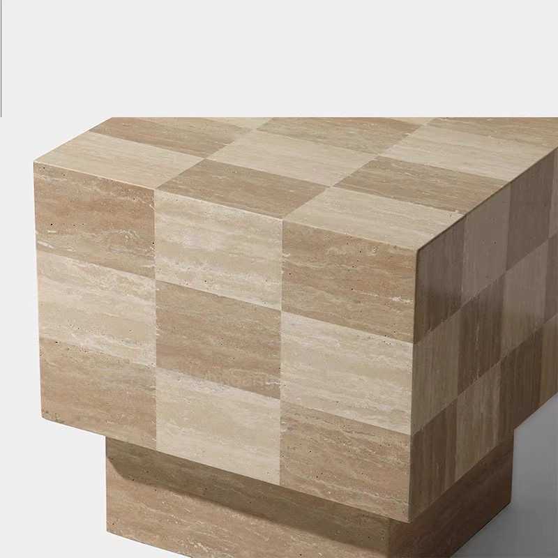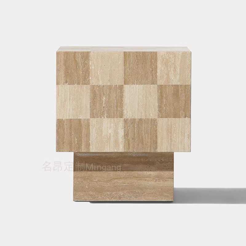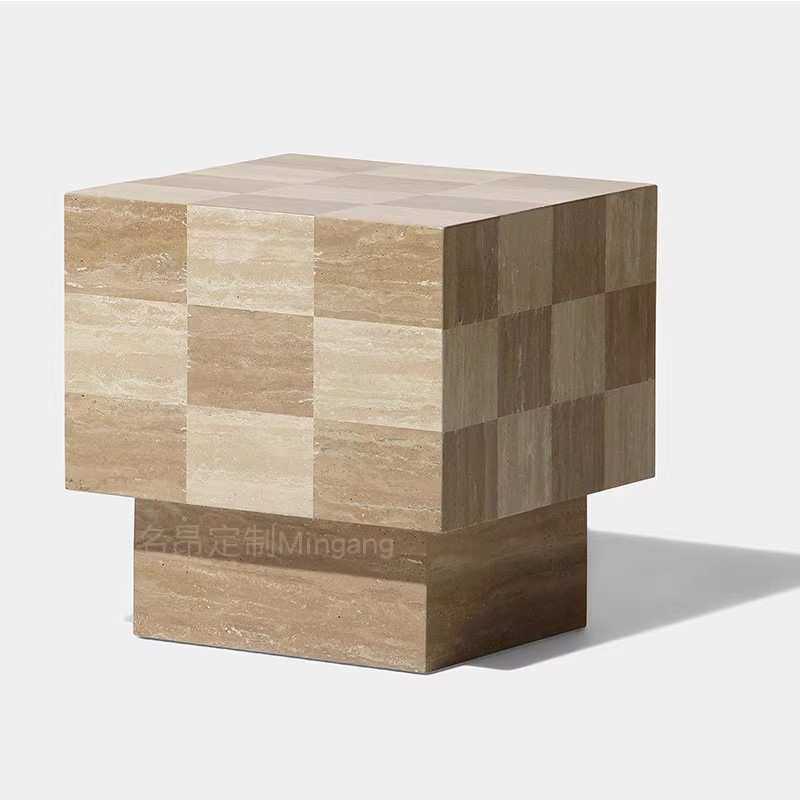 极简天然洞石大理石方格边几艺术客厅家用设计师床头桌小方桌