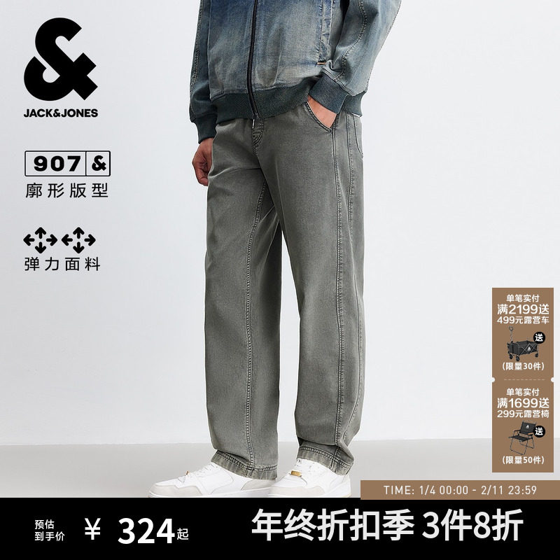 907杰克琼斯秋季新款牛仔裤弹力时尚廓形裤子百搭潮流长裤男装士