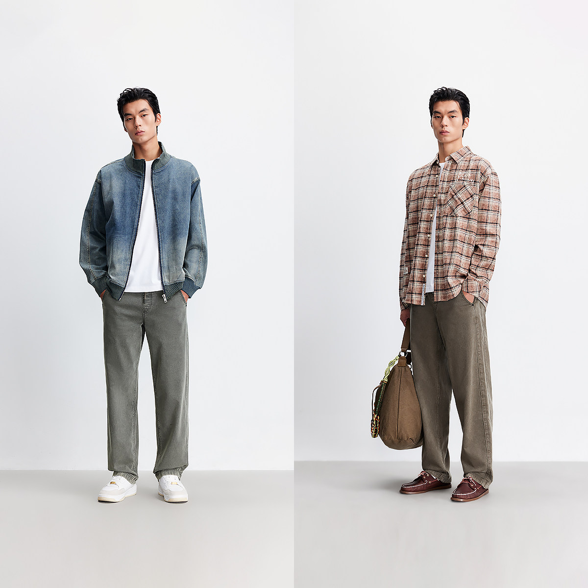 王安宇商场同款森马牛仔裤男弯刀裤复古2025秋季新款宽松弧形裤子