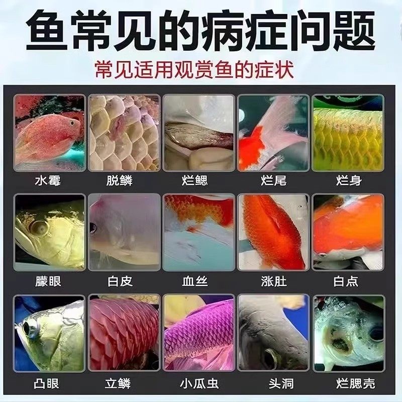 鱼药万能疾病治疗锦鲤鱼病专用药观赏鱼烂尾烂身腮水霉白鳞点的药
