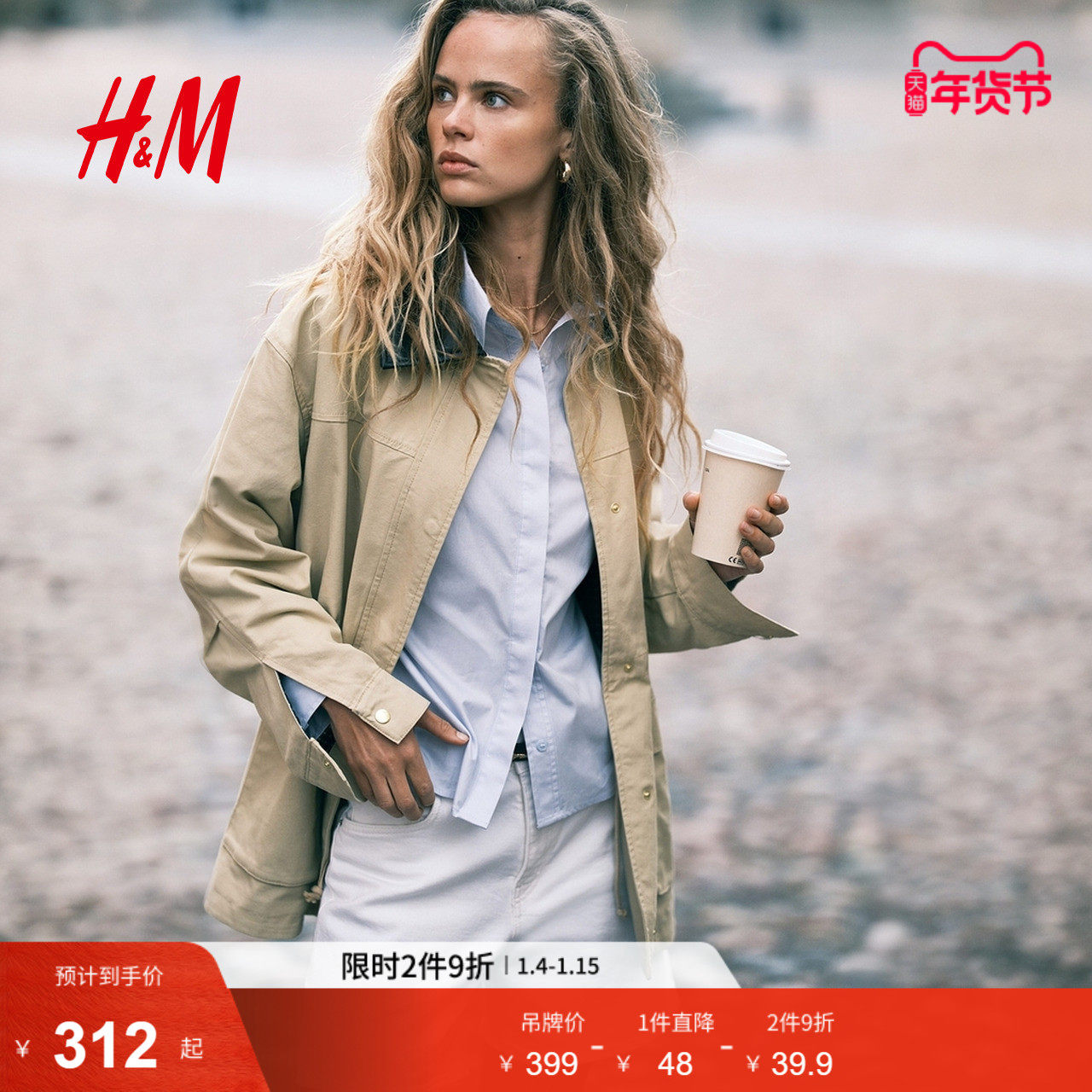 HM女装短外套冬季巴恩风拼接领外套工装收腰夹克1294316