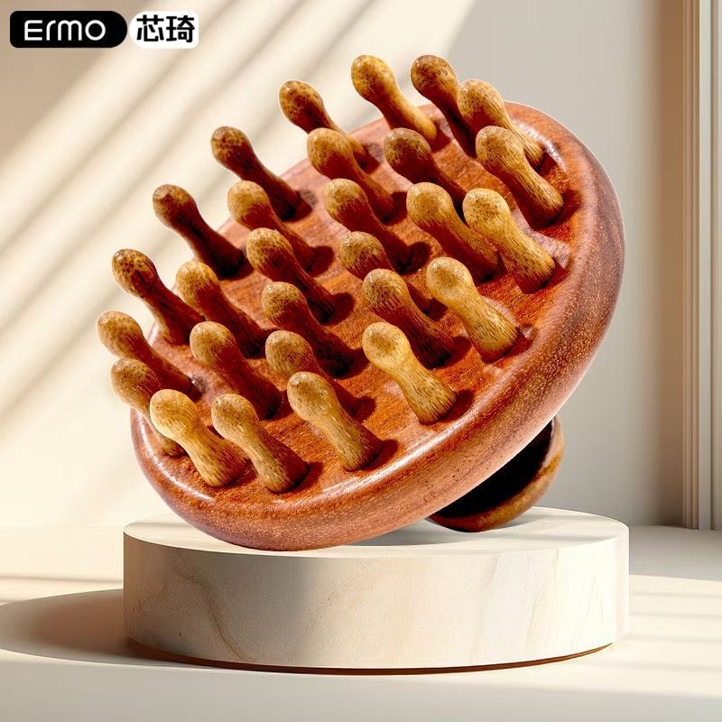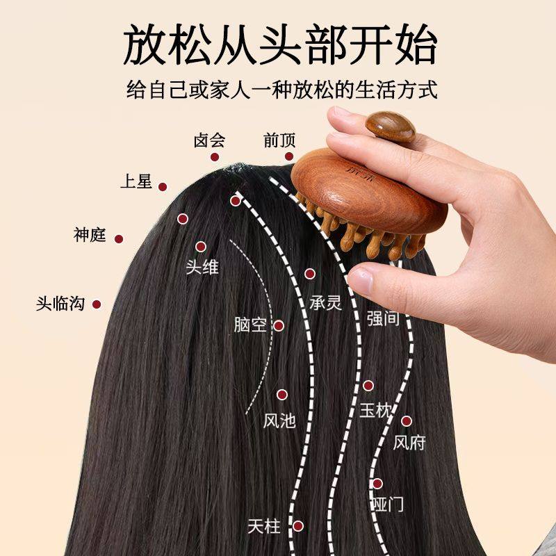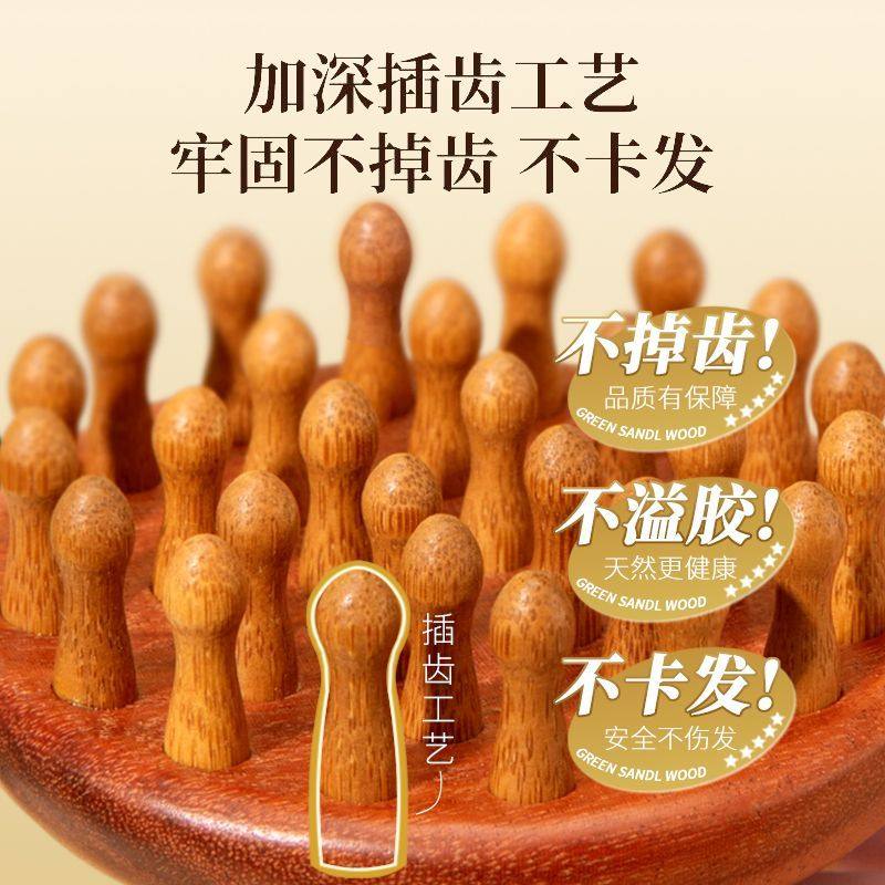 芯琦天然檀木按摩梳子头上经络梳整木按摩头皮全身经络防脱圆盘梳