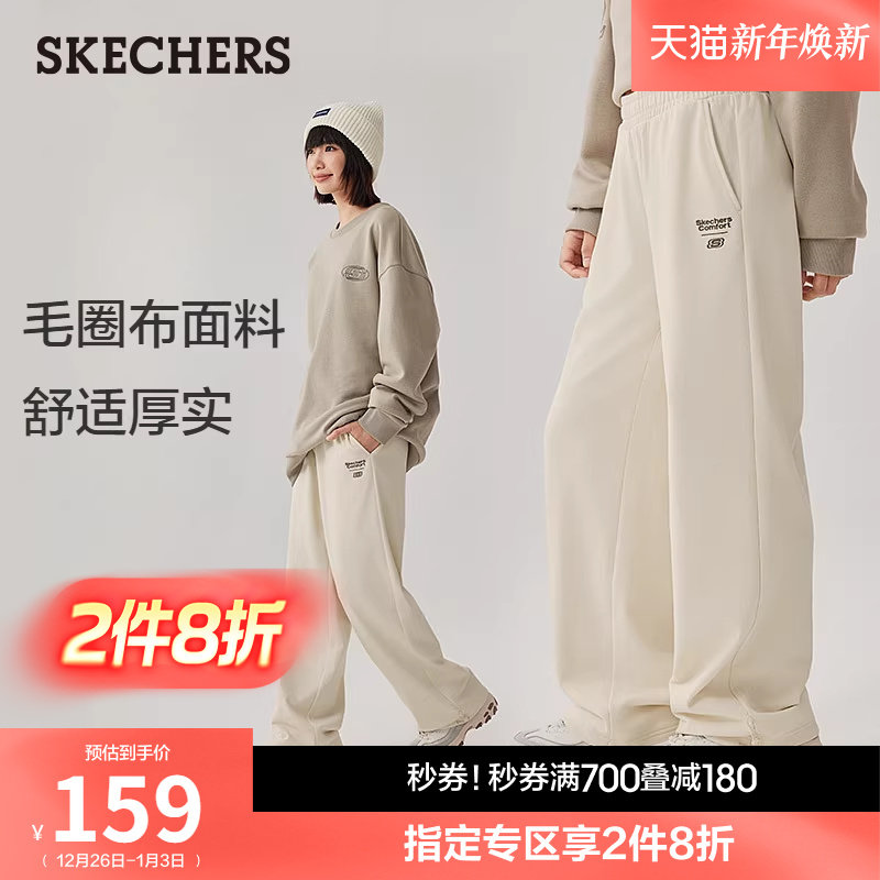 斯凯奇2025秋冬新款女士舒适布长裤休闲运动裤直筒阔腿裤百搭卫裤