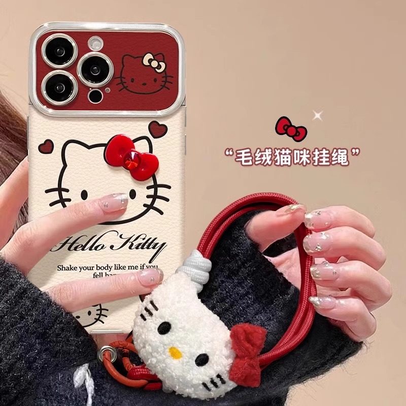 凯蒂猫适用苹果17promax手机壳16新年款iPhone15带手链保护套14plus公仔可爱13卡通全包ip12防摔11个性xs女xr