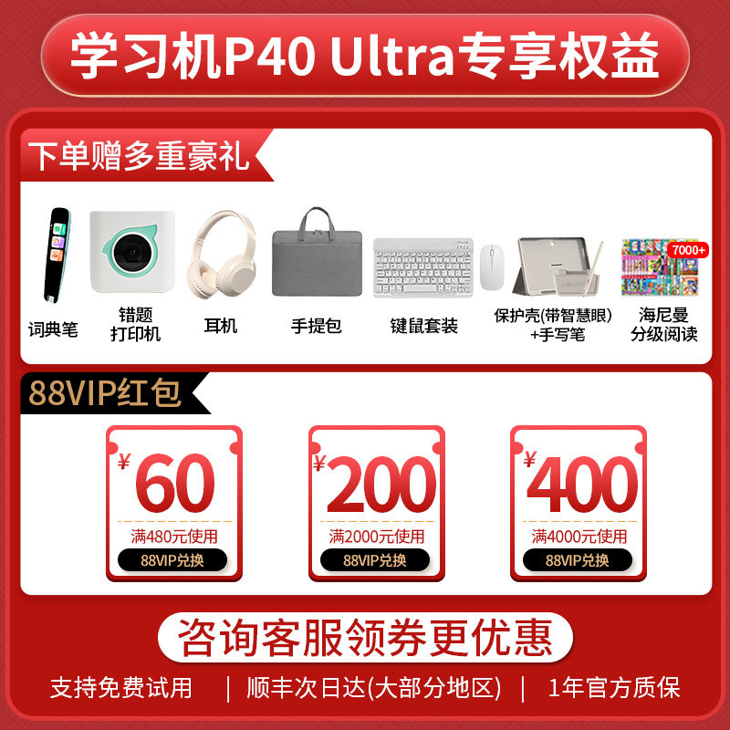 【顺丰现货速发】猿辅导小猿学习机P40UltraAI智能大屏护眼平板小学到初中高中全科同步官方学练一体机