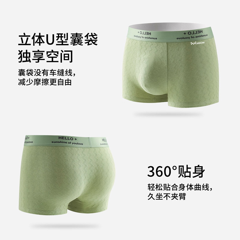 猫人男士棉内裤云感长绒棉亲肤透气抑菌抗菌內裆特殊囊袋吸汗高弹