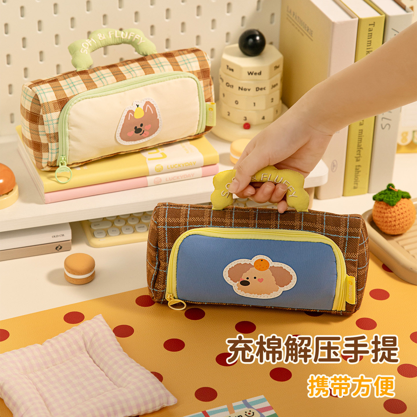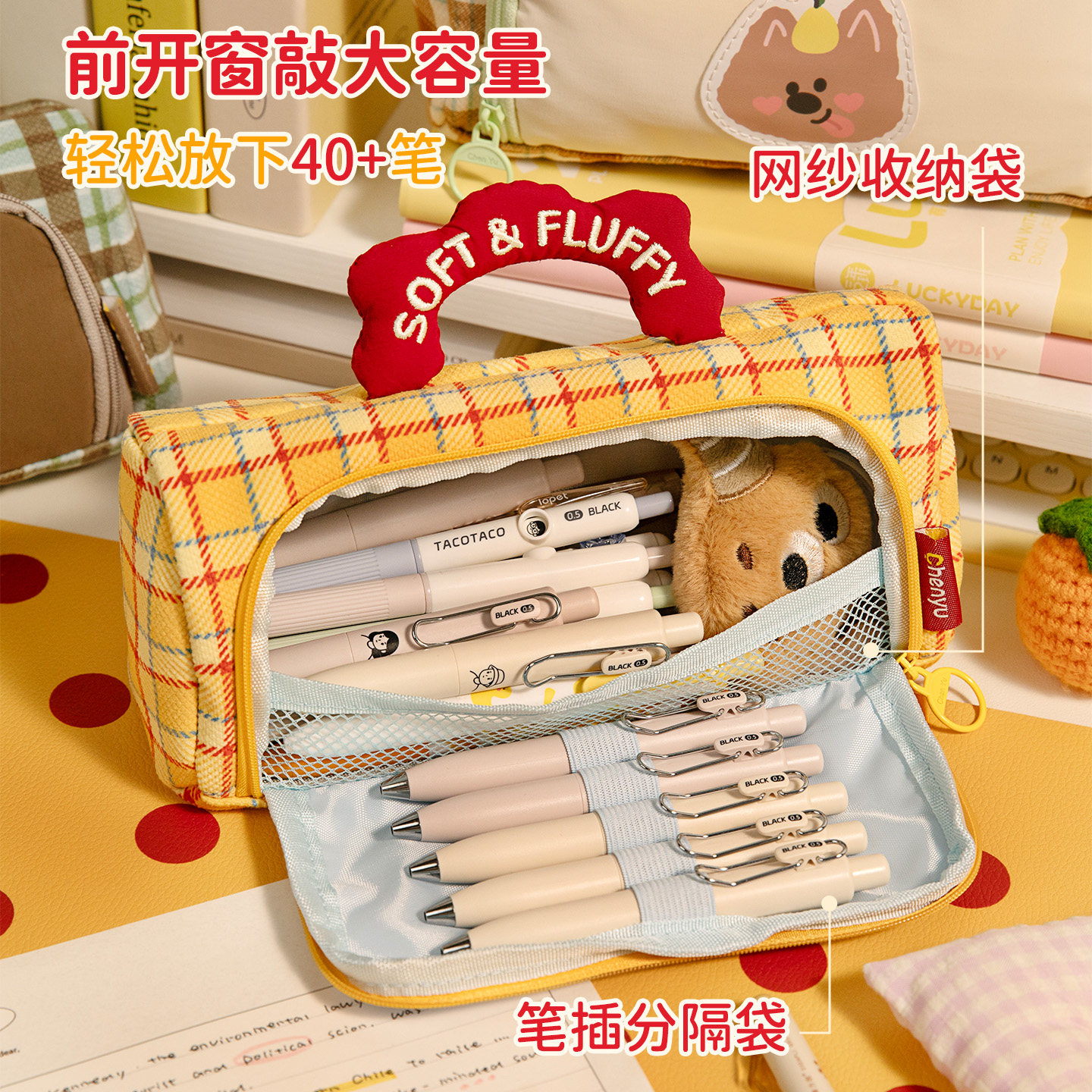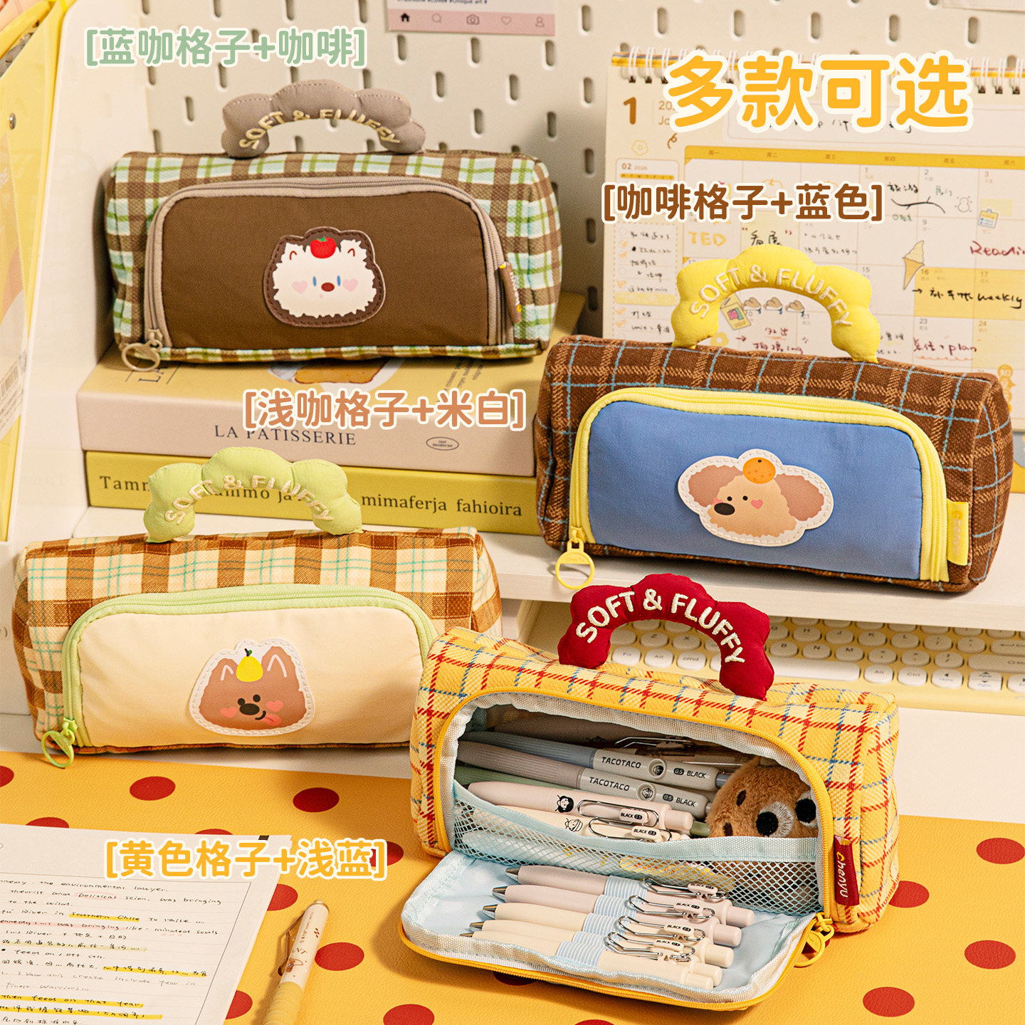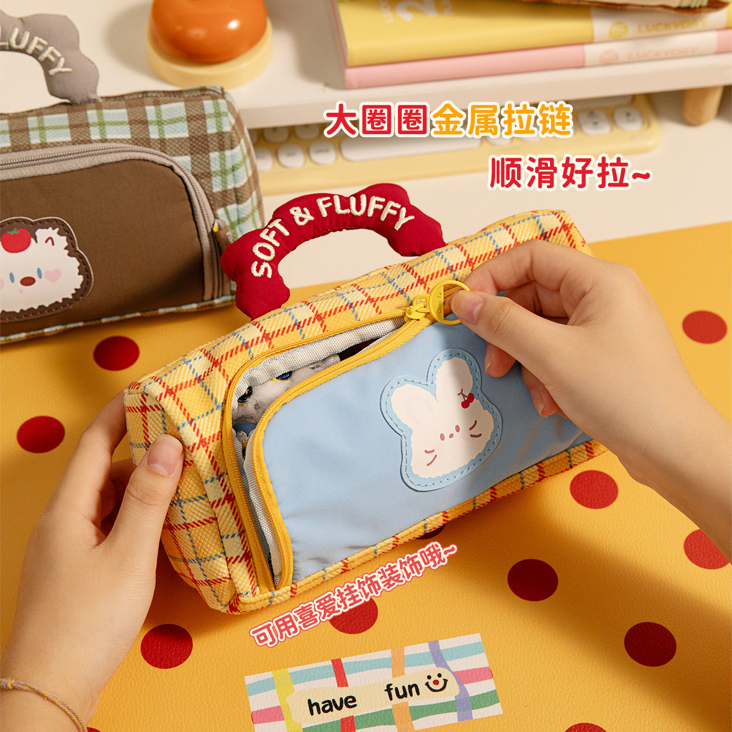 高颜值ins风笔袋卡通格子手提大容量文具袋女生2025年新款文具盒
