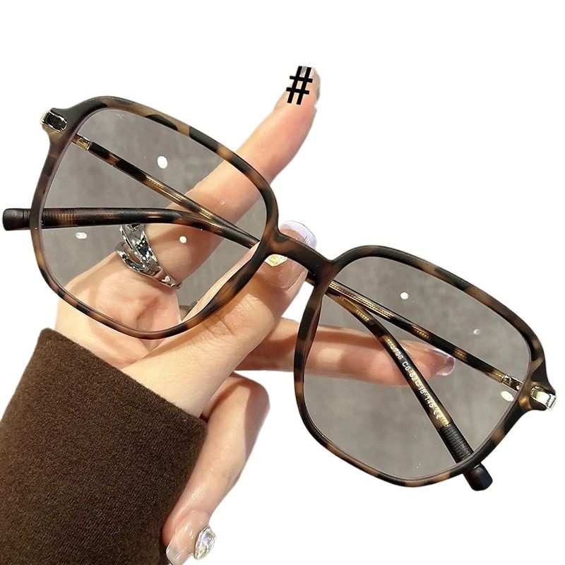 可配度数防蓝光眼镜女复古豹纹近视圆脸素颜大框女式磨砂镜框专业