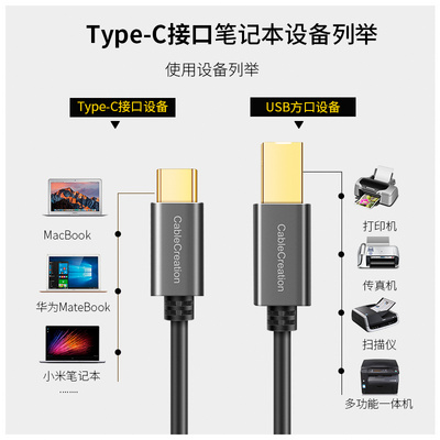 方口type-c转USB-B打印机数据线可适用于苹果Mac戴尔接惠普佳能兄弟耳放DAC解码器声卡电子钢琴midi键盘线