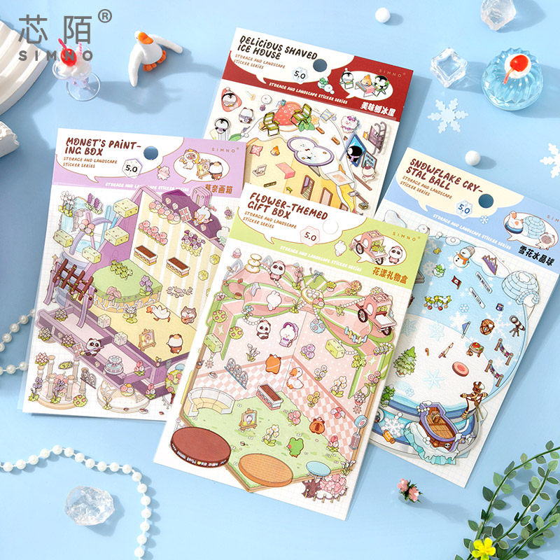 芯陌收纳造景贴纸5.0新款goodvibesummer贴纸高颜值韩系场景贴纸小红书同款3d立体diy贴纸装饰场景微缩拼贴纸