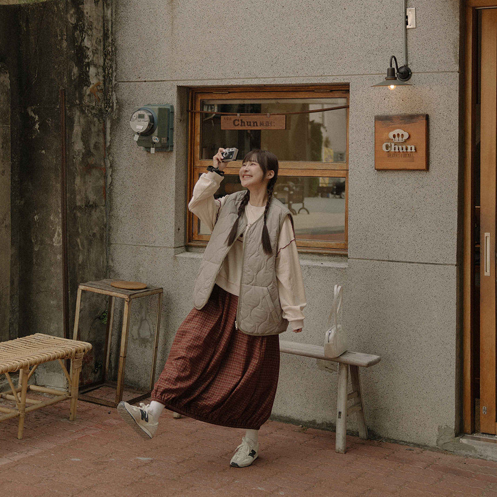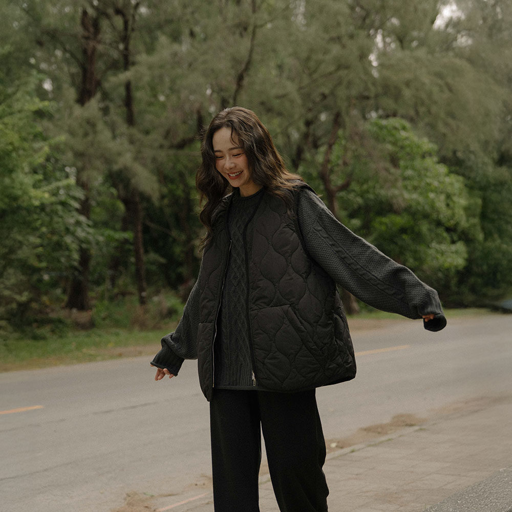 QUEENSHOP 2025秋冬新品女装衍缝铺棉造型宽版背心02080320
