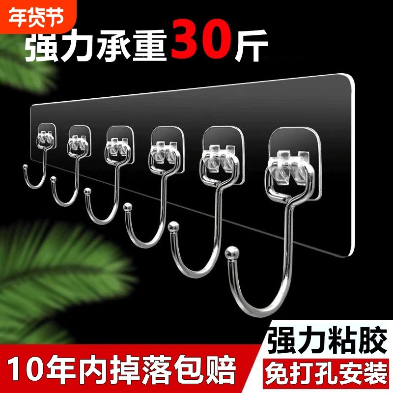 挂钩免打孔厨房墙壁门后挂衣架衣服粘钩强力粘胶浴室连排无痕衣钩