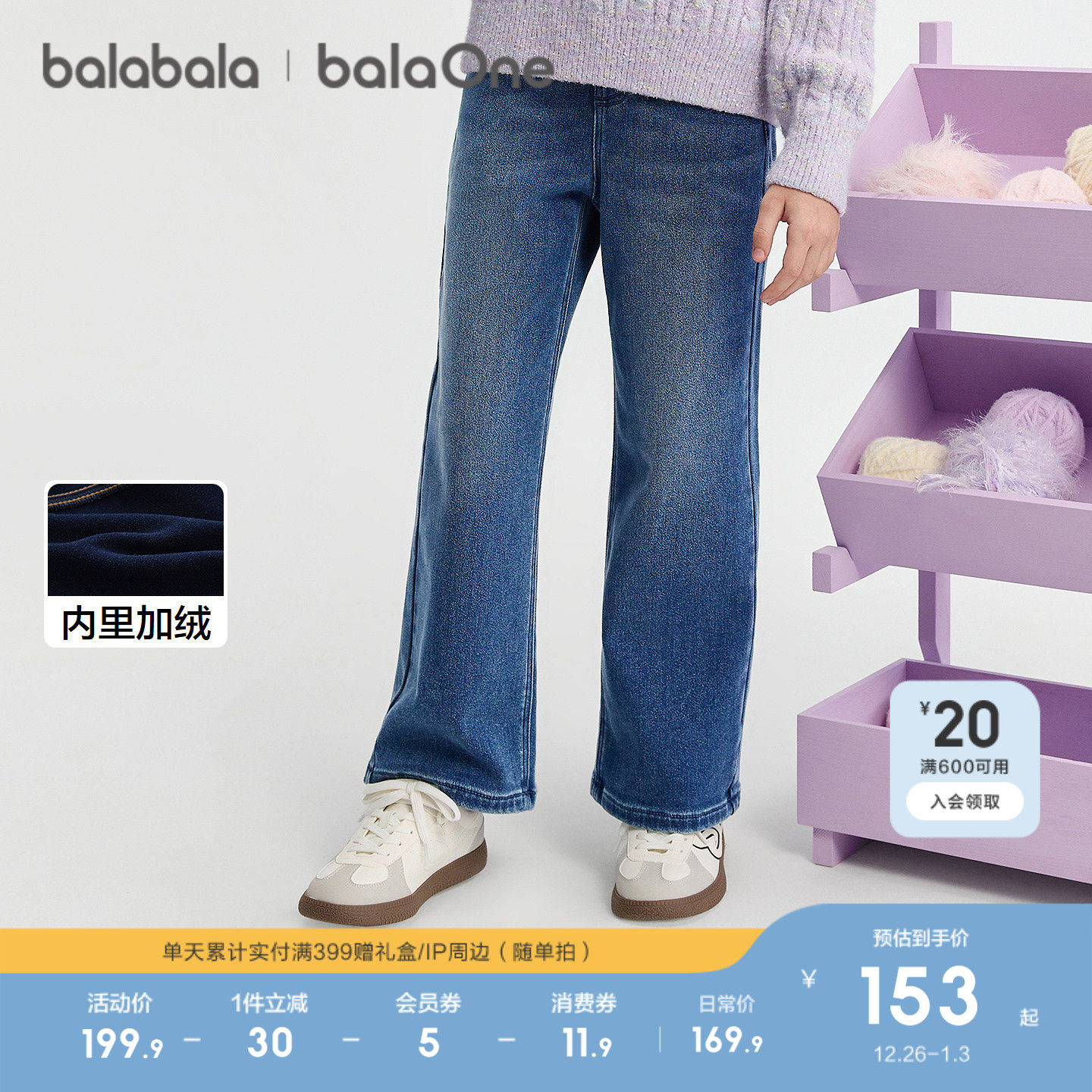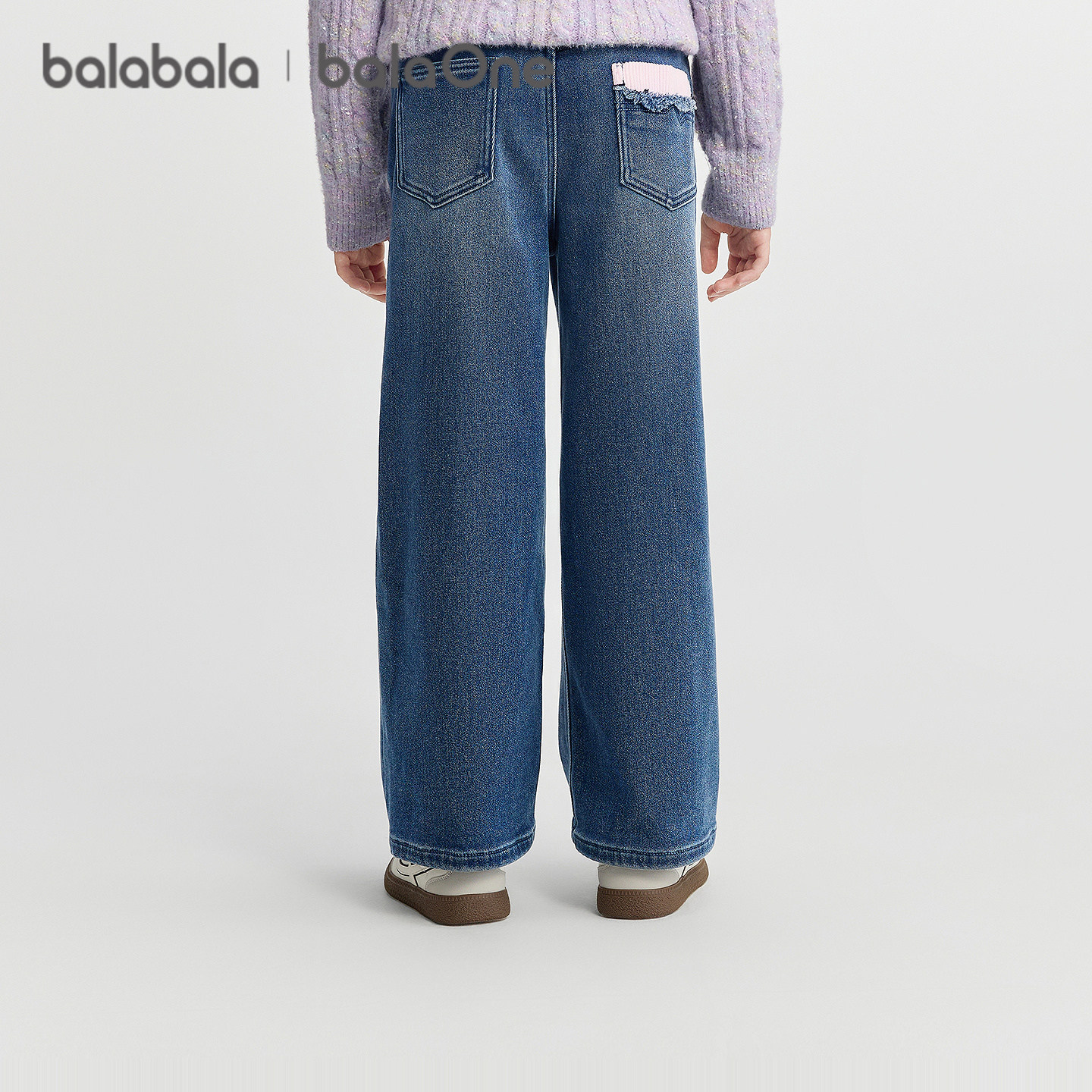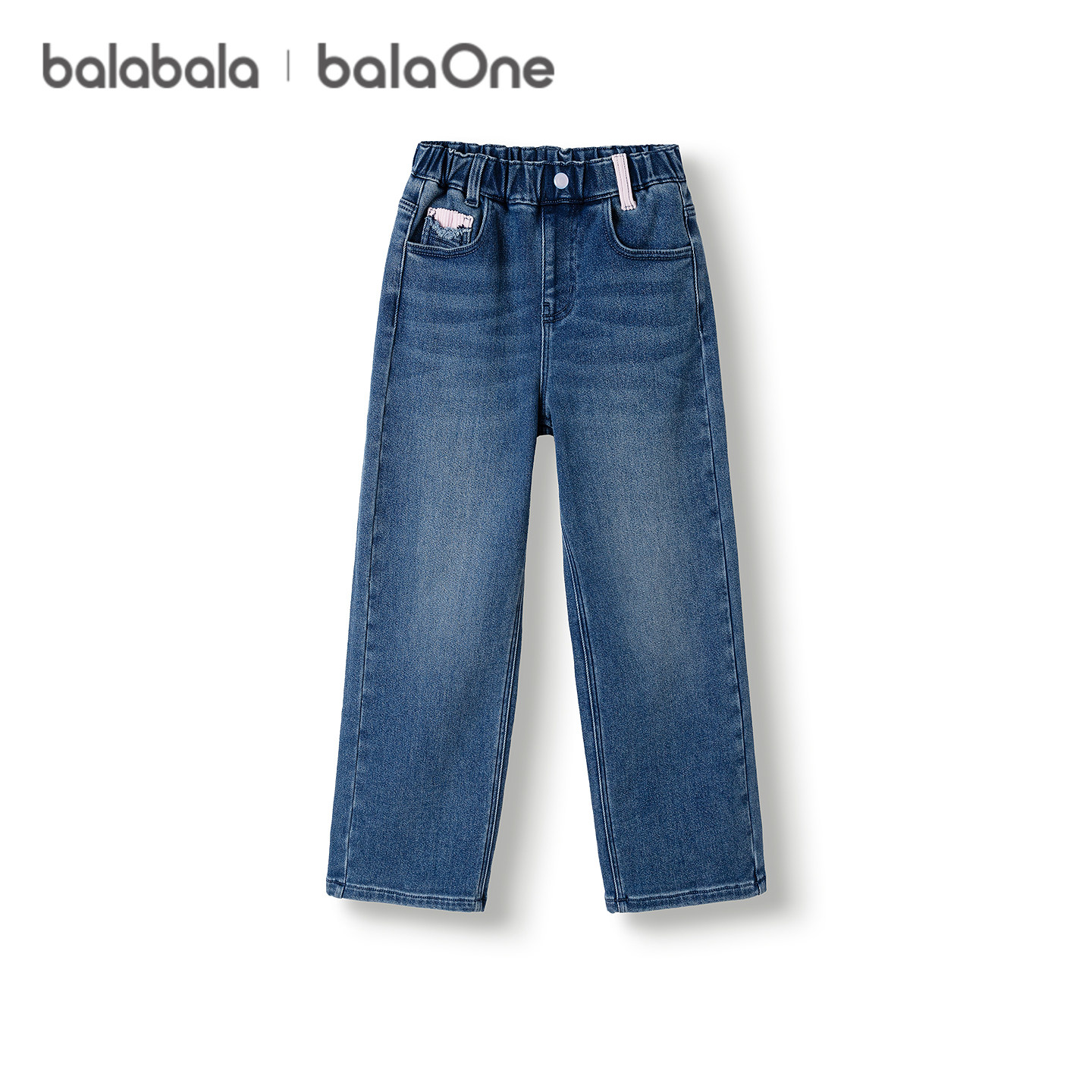 【balaOne】巴拉巴拉童装儿童裤子女童冬加绒牛仔长裤2025直筒裤