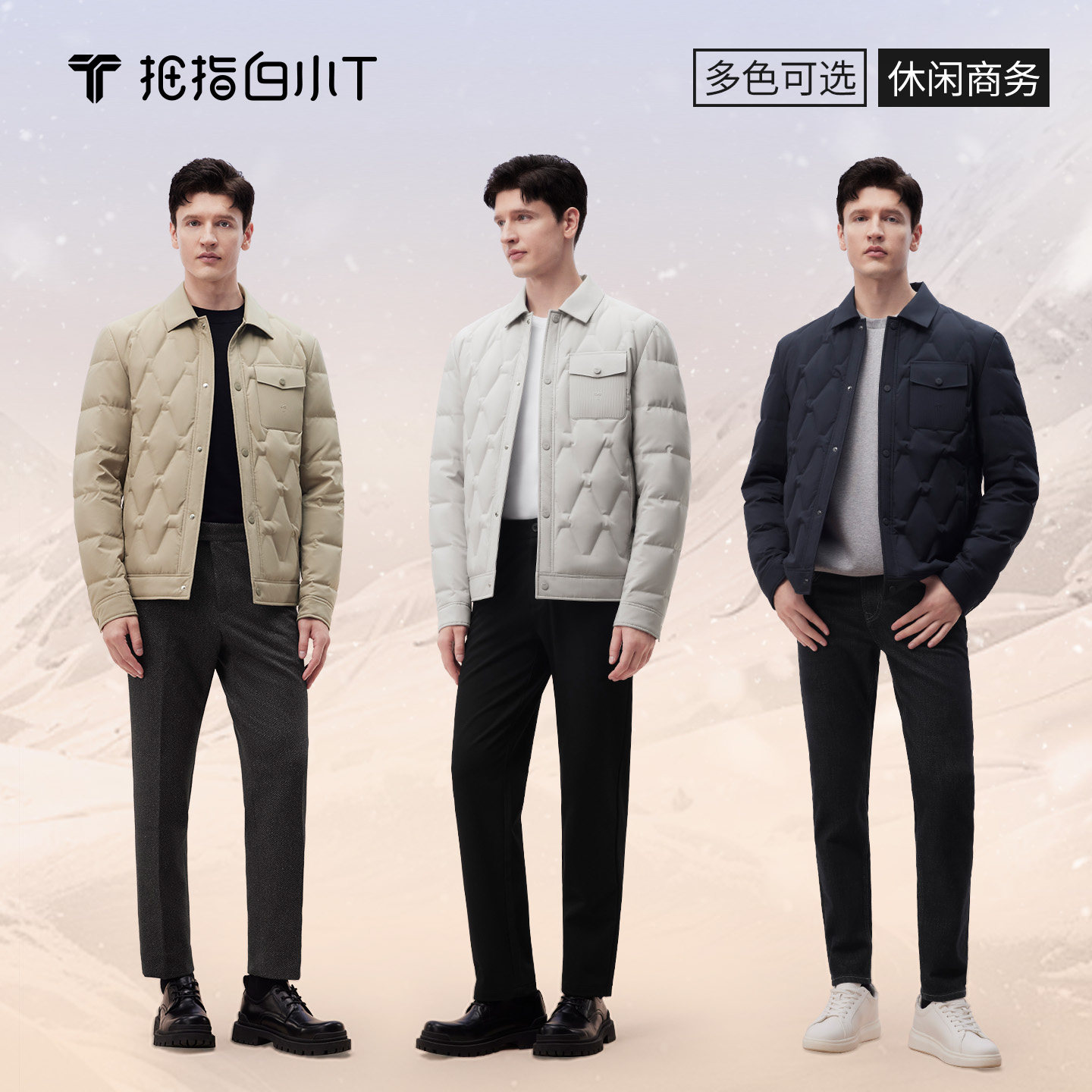 拇指白小T新款热力羽绒服翻领商务休闲上衣90%白鸭绒保暖百搭外套